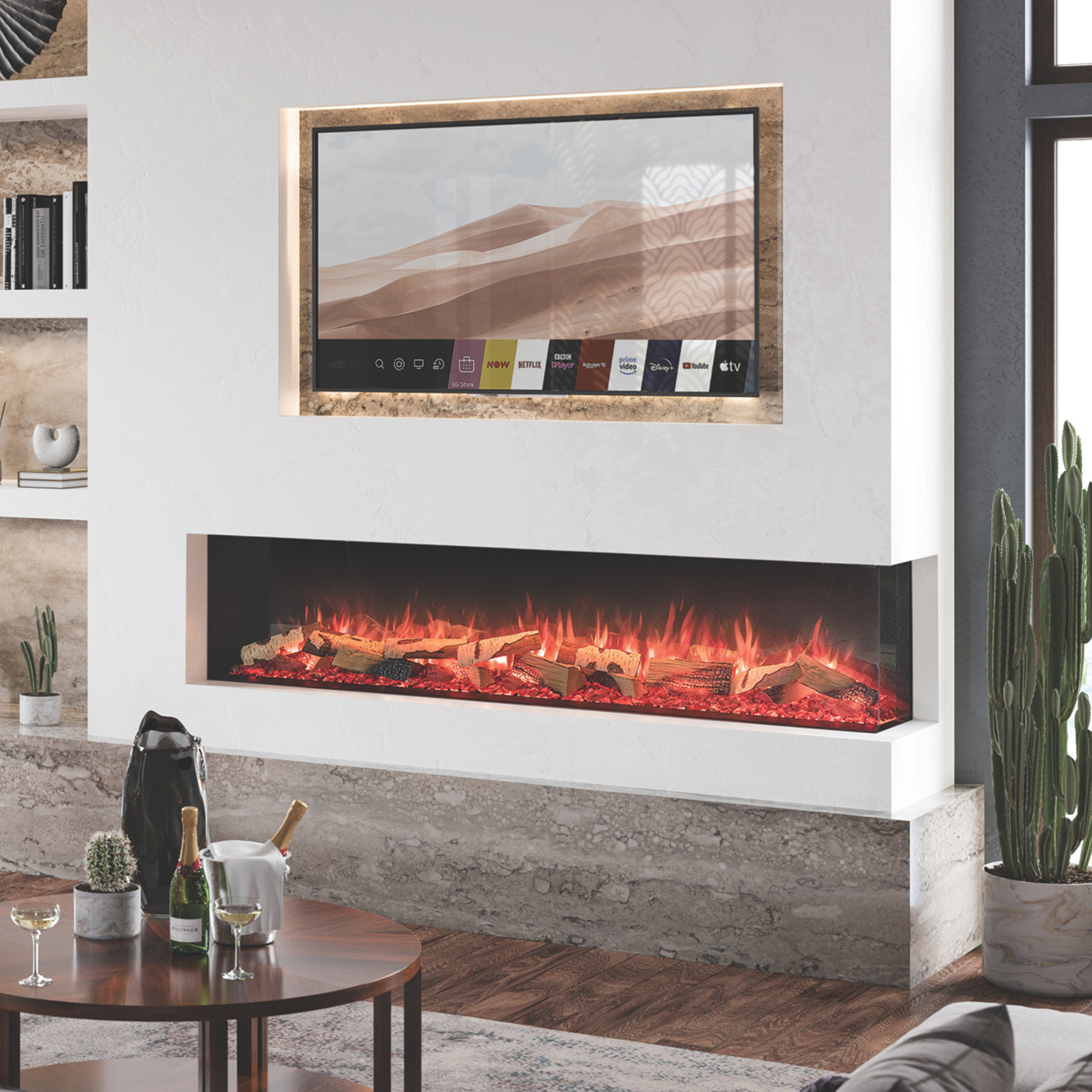 Choosing the size of your Avanti electric fire and your TV will come down to both the space you have available and your personal preference. Actual TV sizes vary across manufacturers, and the way your TV is fitted (for example into a cavity recess) will also impact the way it looks in relation to your Avanti fire. Your retailer will often be able to help you size up your Avanti and TV to achieve the perfect look.