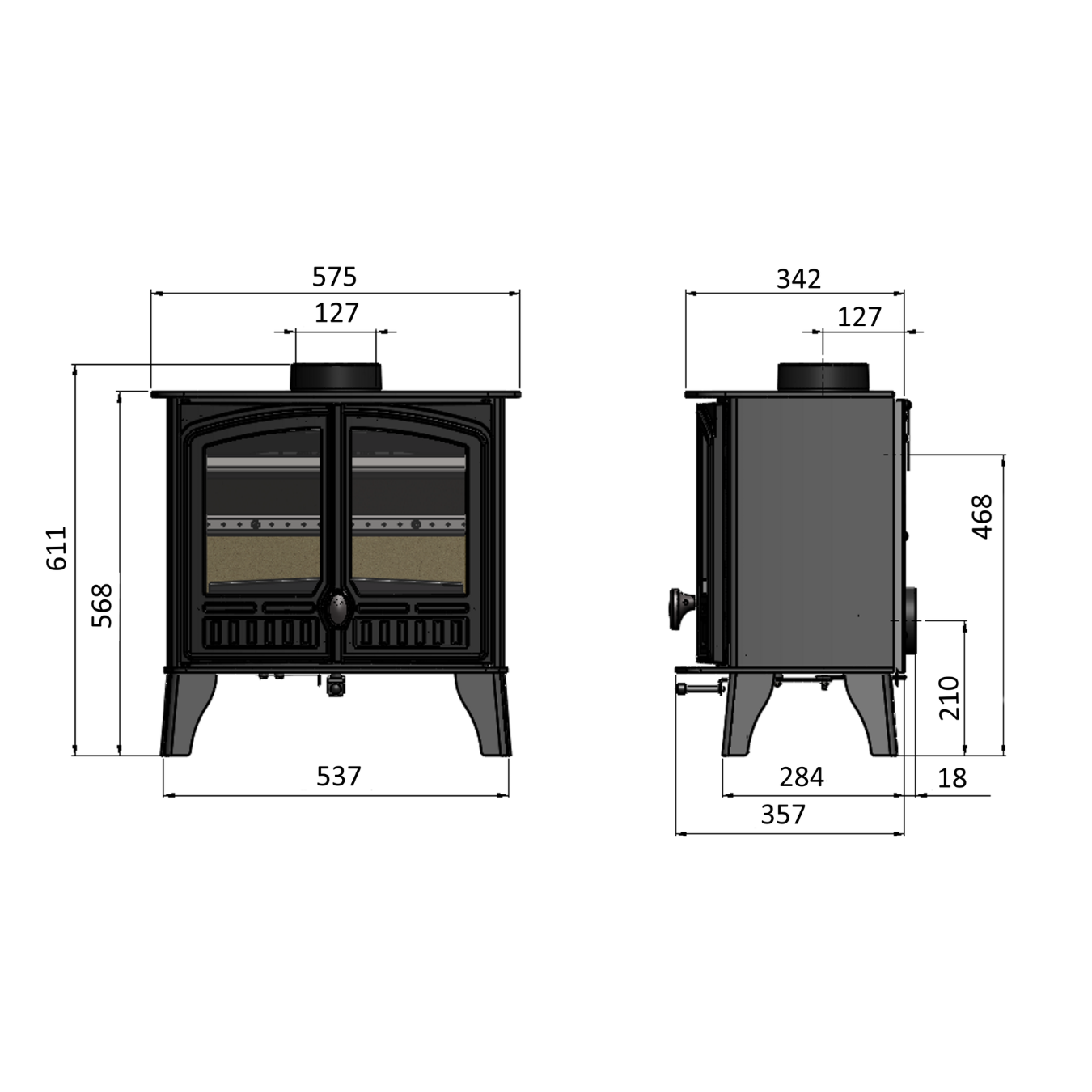 Eco Design 2022 ready and DEFRA smoke control exempt, the Herald 5 Eco Slimline Double Door ensures clean, efficient burning, making it ideal for both town and country homes.