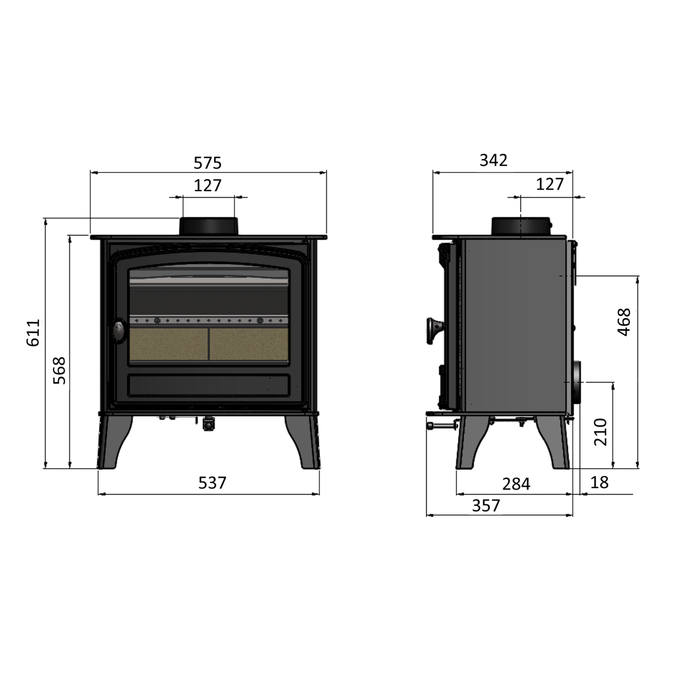 The large landscape viewing window framed by double doors creates a warm and inviting focal point, allowing you to enjoy the flames in all their glory. With a heat output range of 4–6.5kW and a nominal output of 4.9kW, this stove provides flexible heating to suit your needs.