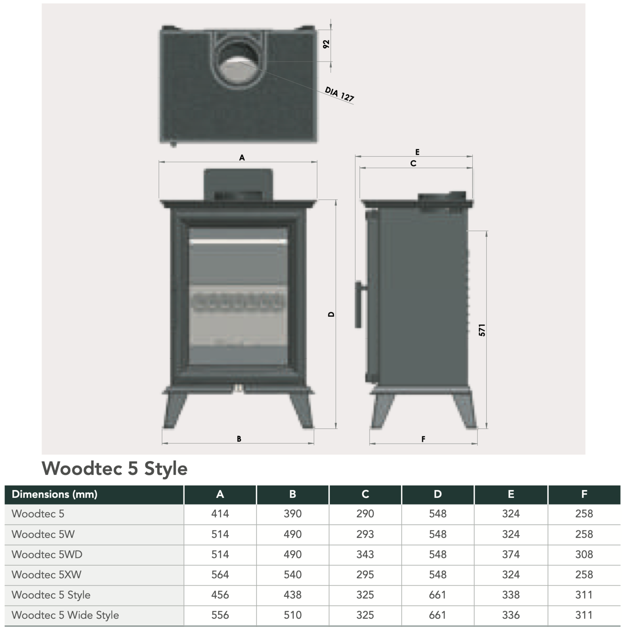 • Personalise your stove with either the stand, leg stand, or log store accessory (except the Woodtec Style models)
