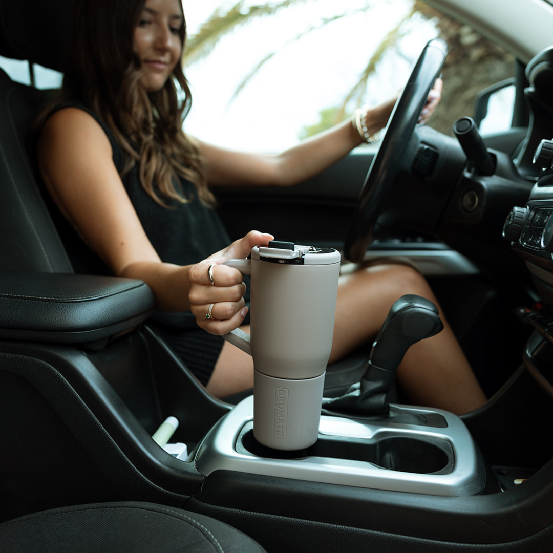 The BrüMate Müv 35oz Travel Mug is designed to fuel your day with powerful insulation, a leakproof lid, and a comfortable carry handle. Built for both hot and cold beverages, it combines BevGuard™ insulation, a BevLock™ leakproof lid, and the innovative OctaLock™ thread system for easy lid removal and secure sealing.
