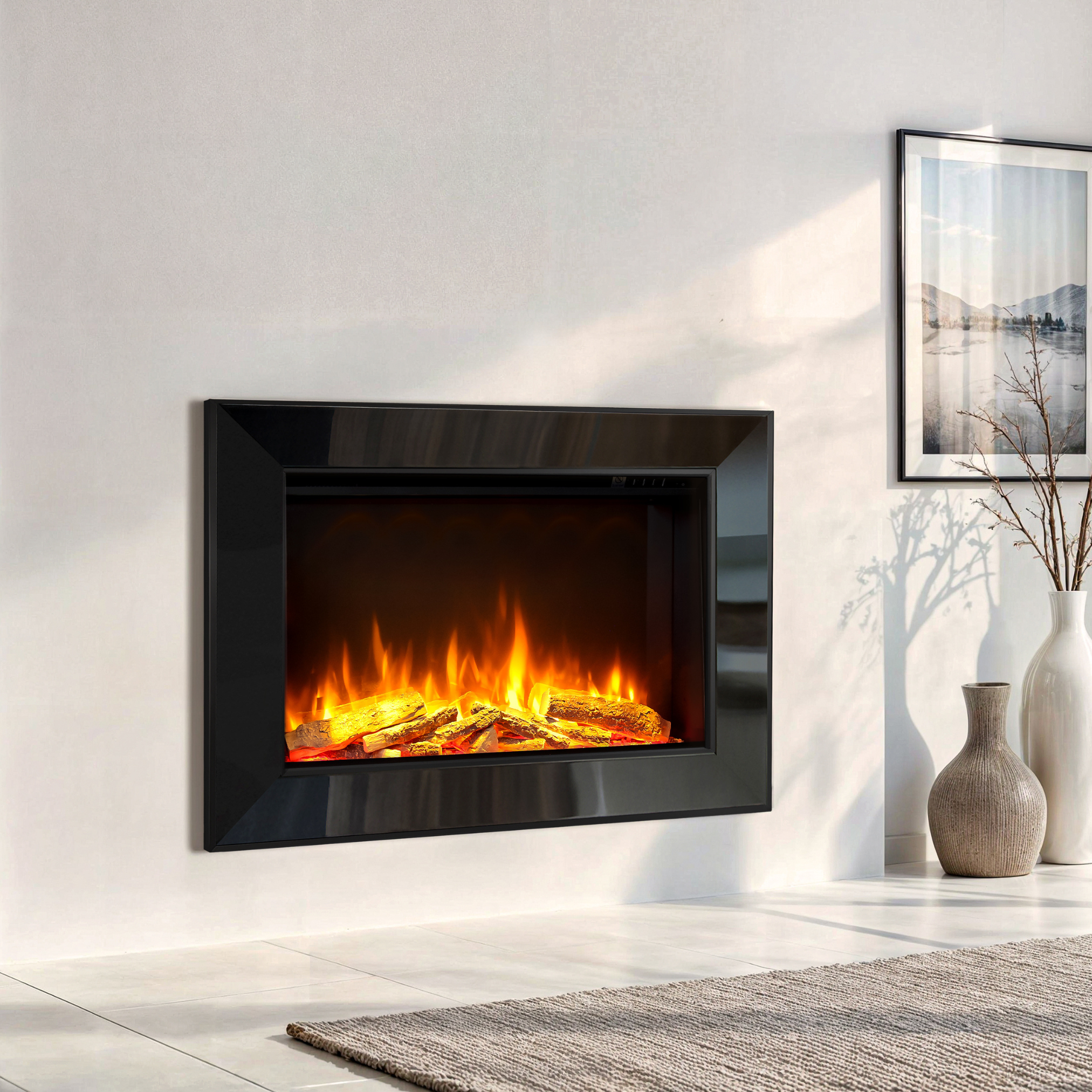 DLX Vader 750 is a glass-fronted wall inset electric fire featuring the stylish ‘Vader’ Black Nickel & Chrome plated steel fascia. This fire comes with Smart connection capability and innovative technology. The fuel effect consists of realistic natural flames, and authentically designed woodland logs placed over a blaze underbed living embers. The flame speed can be easily controlled to suit your desired mood and preference.