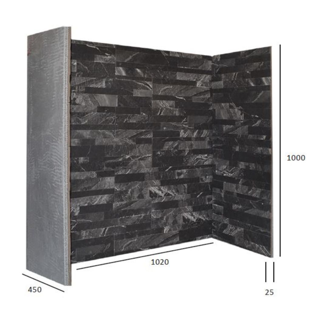 • Back panel (1x): 1020mm (W) x 1000mm (H) x 25mm (T)