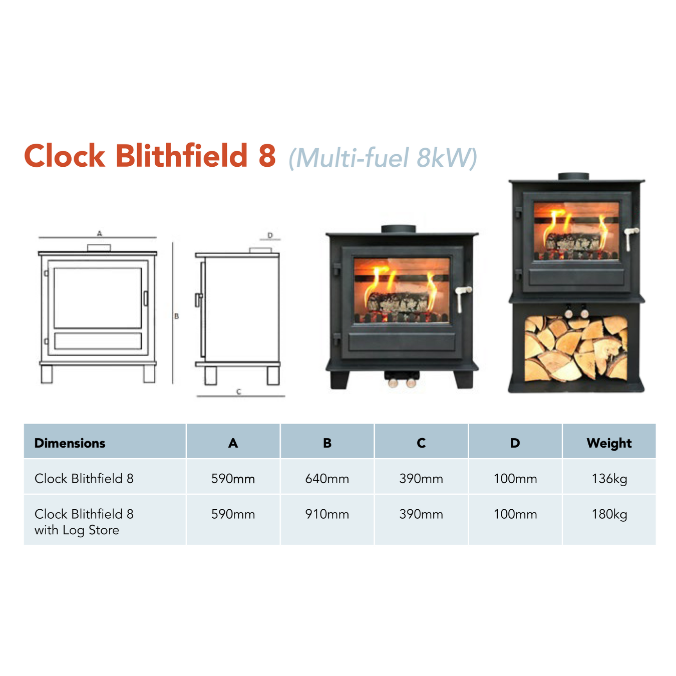 Blithfield 8 8kW Solid Fuel Woodburning and Multifuel Freestanding Stove - Clock