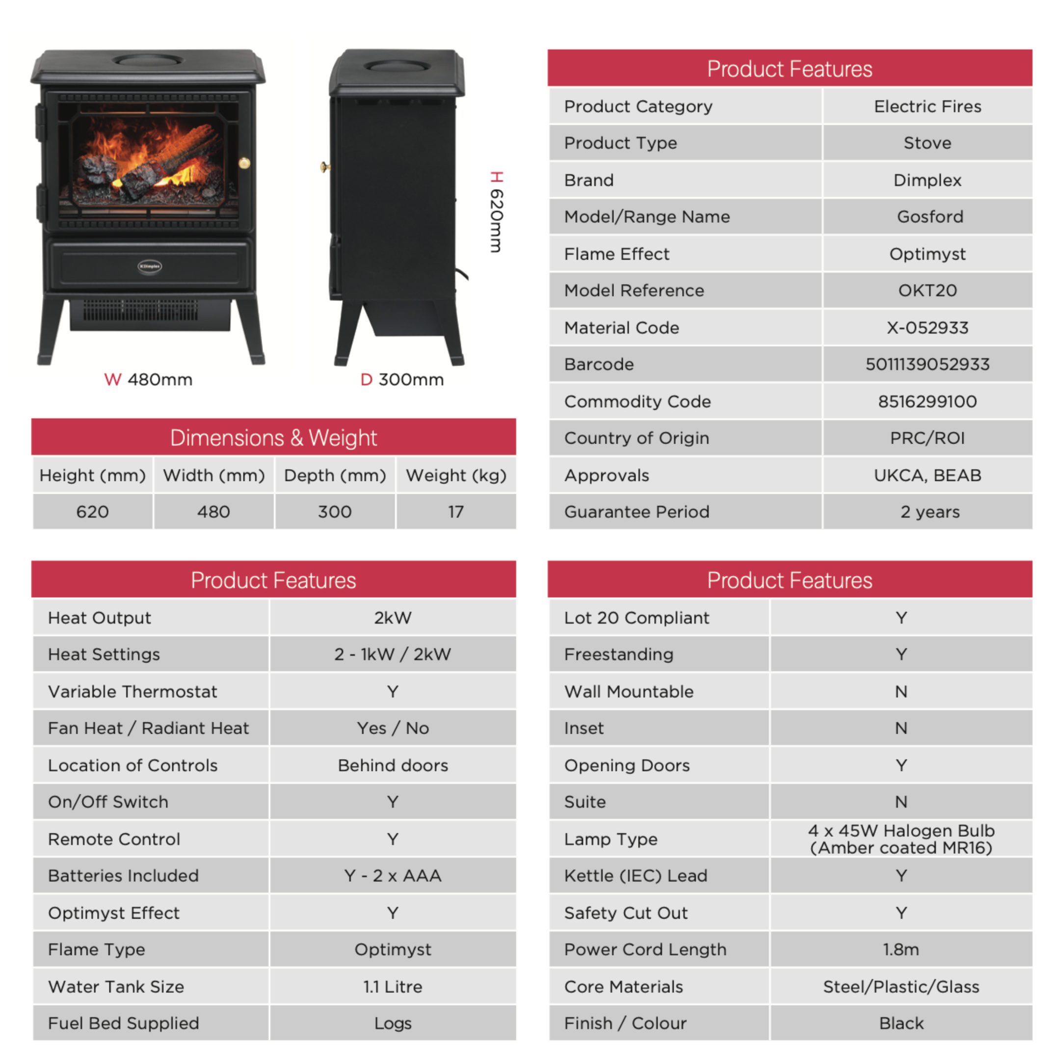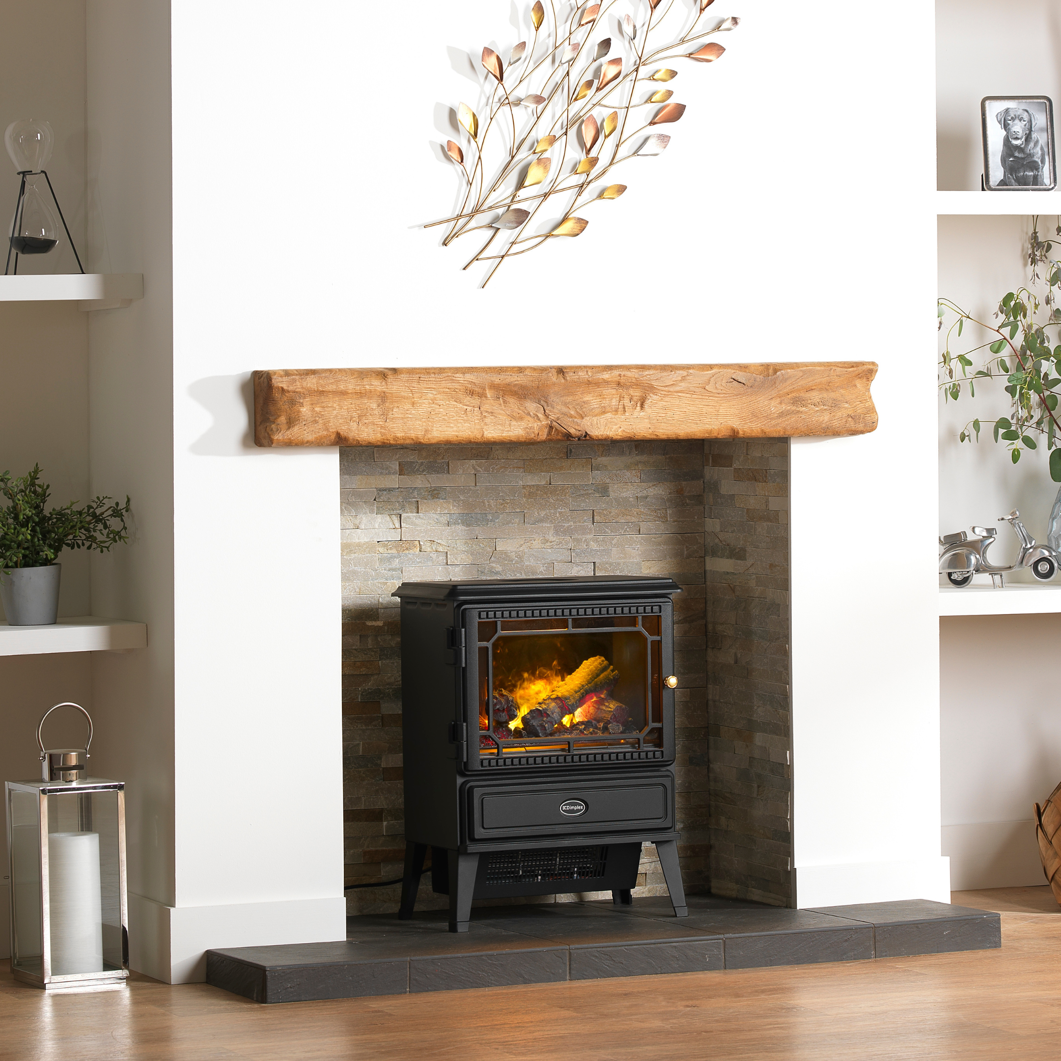 The Gosford electric stove creates the perfect fireplace for your home and provides warmth and ambience on those cool evenings with its integrated heater which provides up to 2kW of heat. This electric fire can be operated via manual or remote control and can even be used independently of the electric heater, meaning you can enjoy the classic feel of the fire all year round. Available in stylish matt black finish that will complement a variety of interior decor styles and will add a touch of authentic charm to your living space.