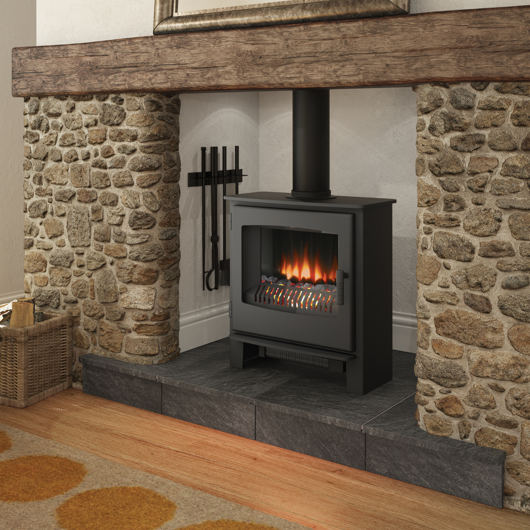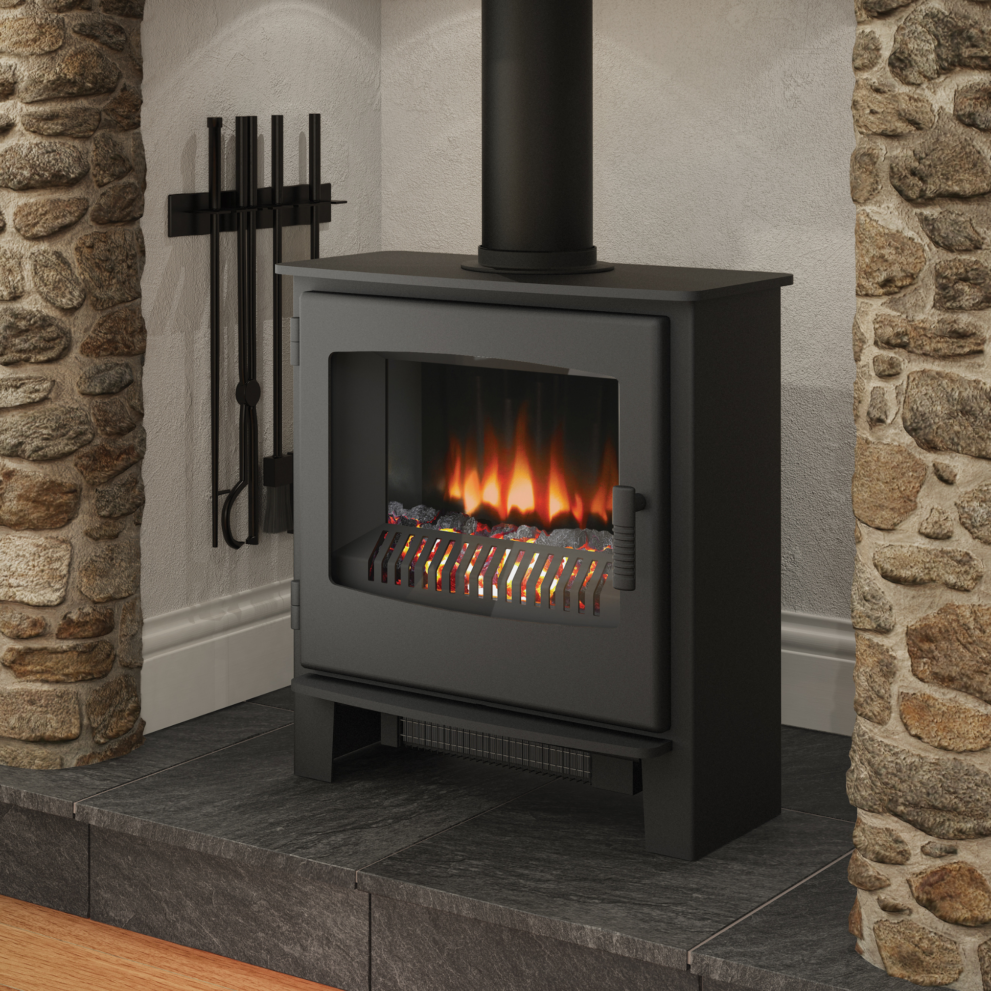 Our Desire electric stoves provide the shimmer and smoulder of a coal burning stove but in the most convenient form. This Steel construction in Matt Black finish is available in three sizes, each providing up to 2kW heat output and a 7 day programmable thermostat remote control.