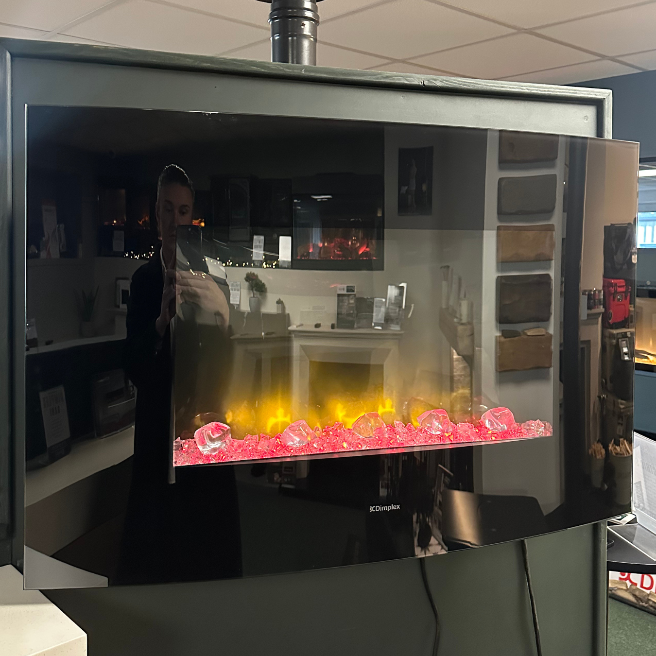 Bring contemporary style and vibrant ambience to your living space with the Dimplex Artesia Wall Mounted Fire. This sleek ex-display model features a curved black glass frame that adds depth and elegance, while the multi-coloured Optiflame® effect delivers a captivating flame display at the touch of a button.