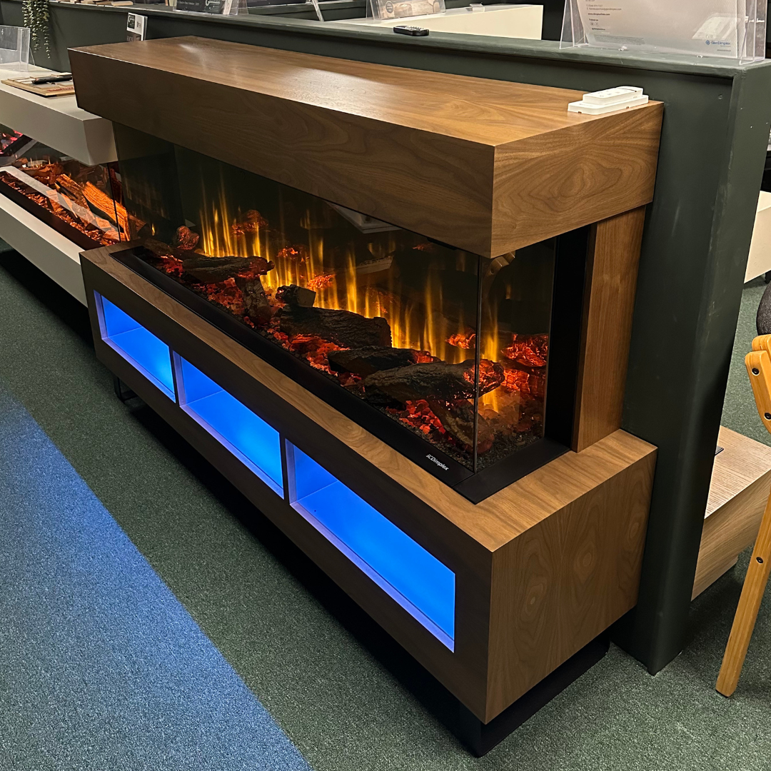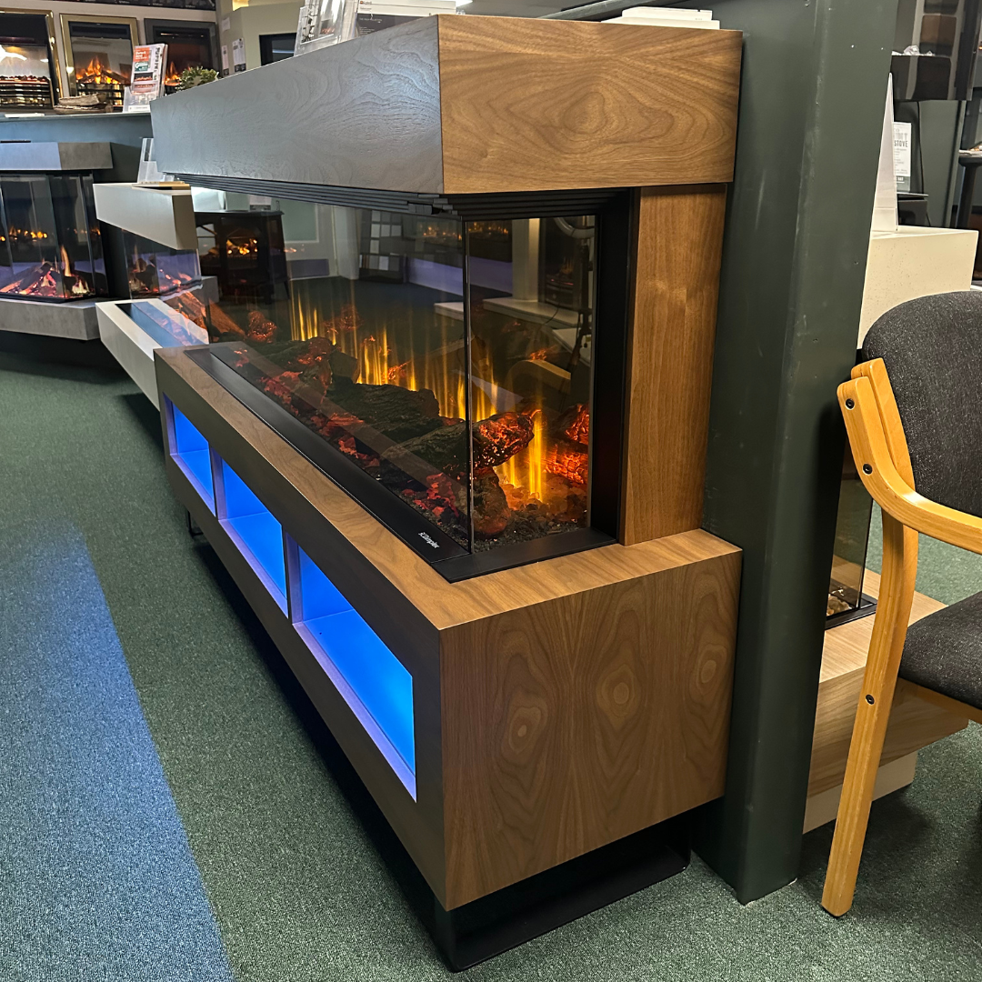 The Arizona surround brings warmth and depth with its mahogany veneer finish, while the Ignite Ultra delivers a sleek, modern flame picture that elevates the whole installation. Together, they create a refined media-wall suite that feels luxurious, immersive, and effortlessly contemporary.