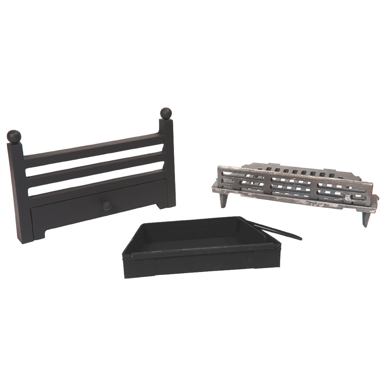 Solid fuel kit comes complete with ash pan, grate and cast iron bar.