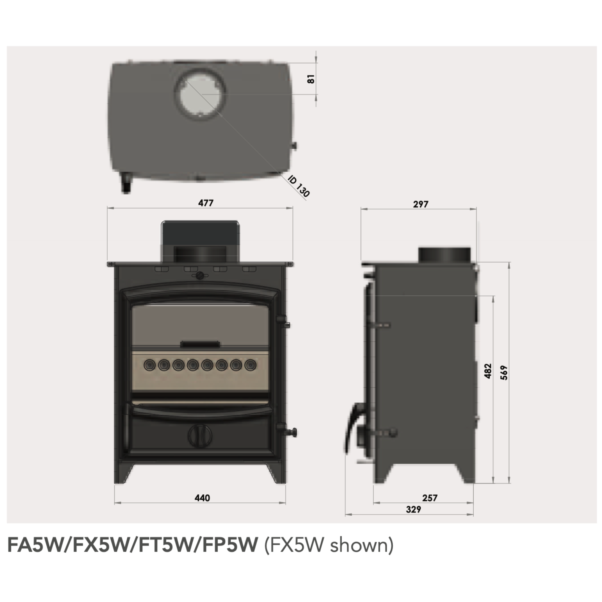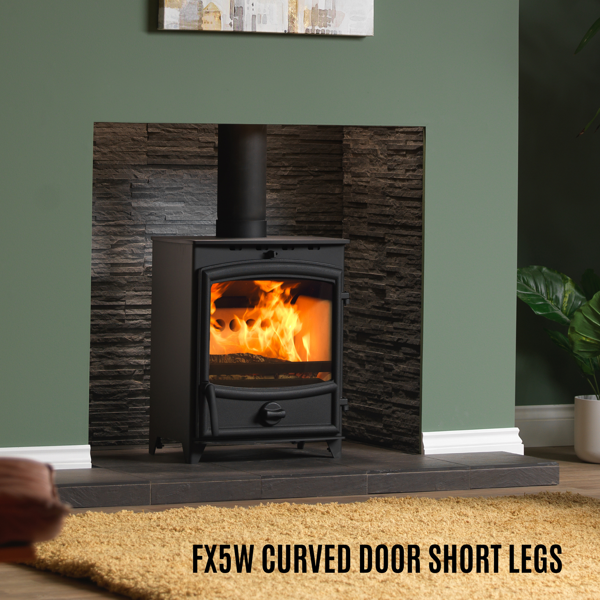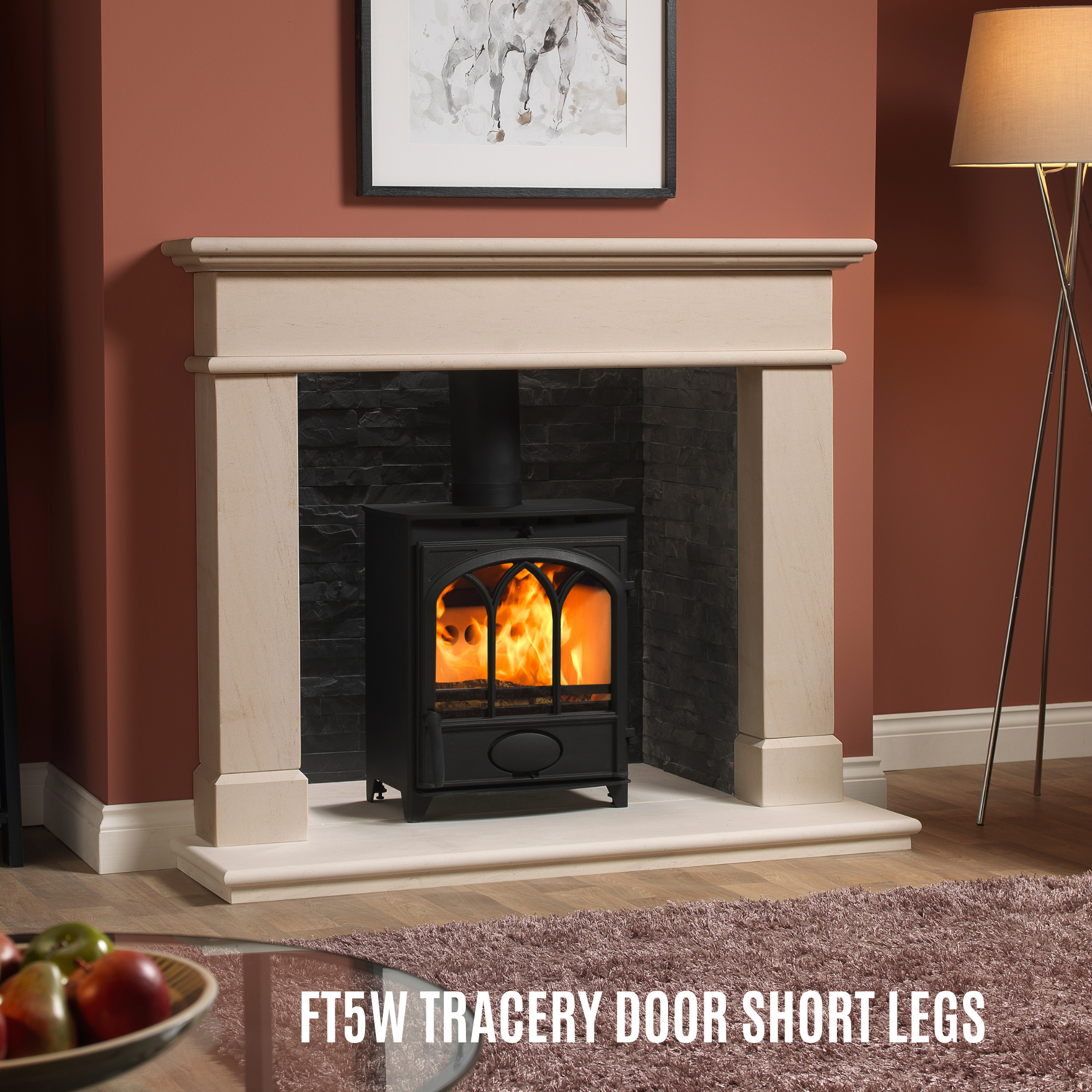The FT5W stove brings with it all the modern environmental benefits of an Ecodesign 2022 multi-fuel stove, whilst providing a traditional exterior appearance thanks to the elegant cast iron door. Maintaining a great view of the fire, the wide screen door features a classic ellipse main arch design plus three slim gothic-style tracery arches.