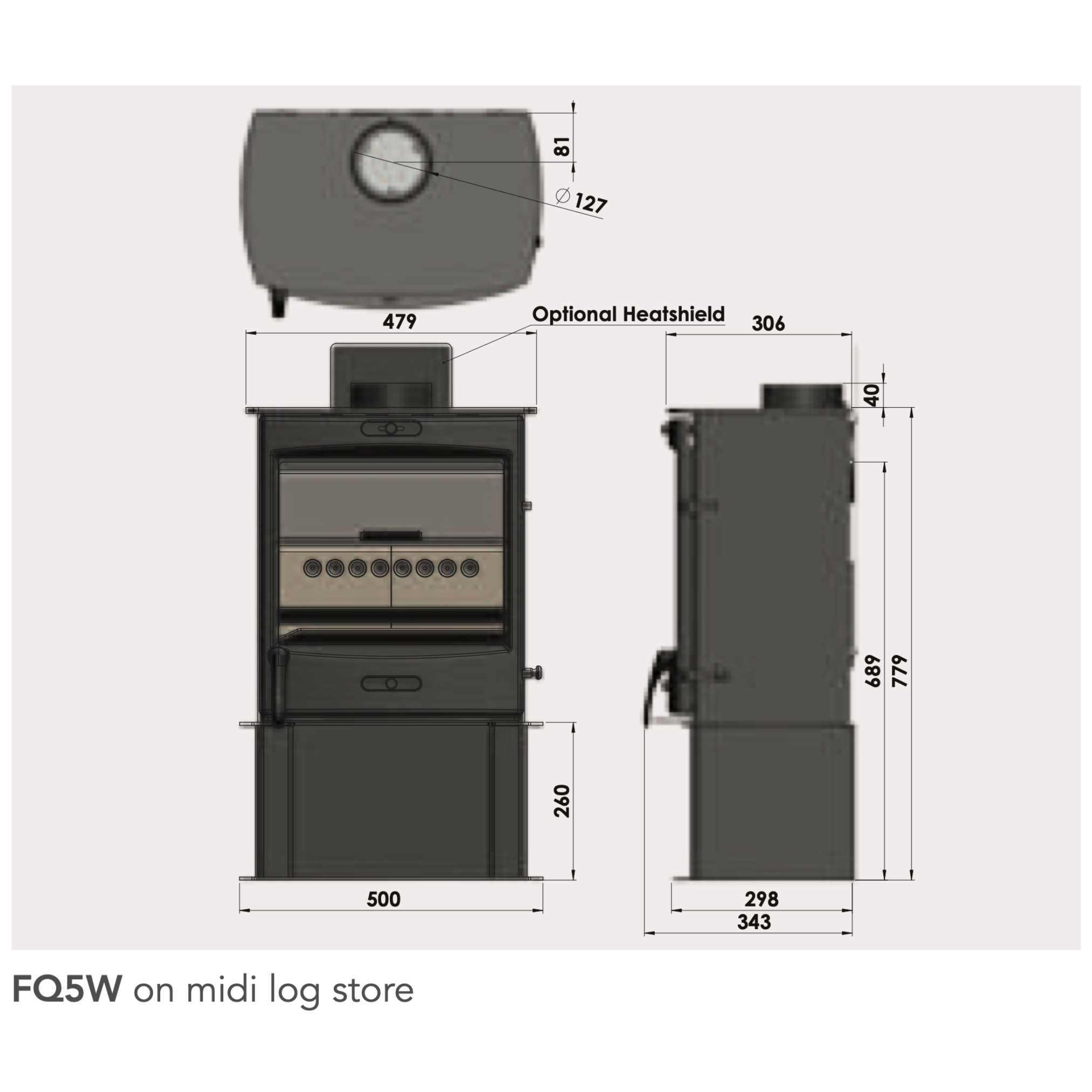 The Fireline FQ5W offers an even larger glass view of the fire than the original 5 Wide stablemates. The subtle curves and angles of the substantial cast iron door frame enhance the superb fire view within. Supplied with the standard soft touch profiled handle, an optional solid stainless-steel bar handle and log store stand, which are available for personalisation.