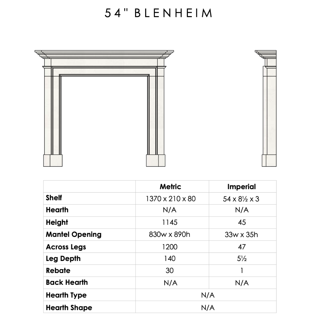 Available in 54" or 60" widths, the Blenheim is perfect for both classic and contemporary settings, offering a balance of grace and grandeur that enhances any fireplace. Its smooth, honed limestone surface showcases subtle natural veining, making each piece beautifully unique.