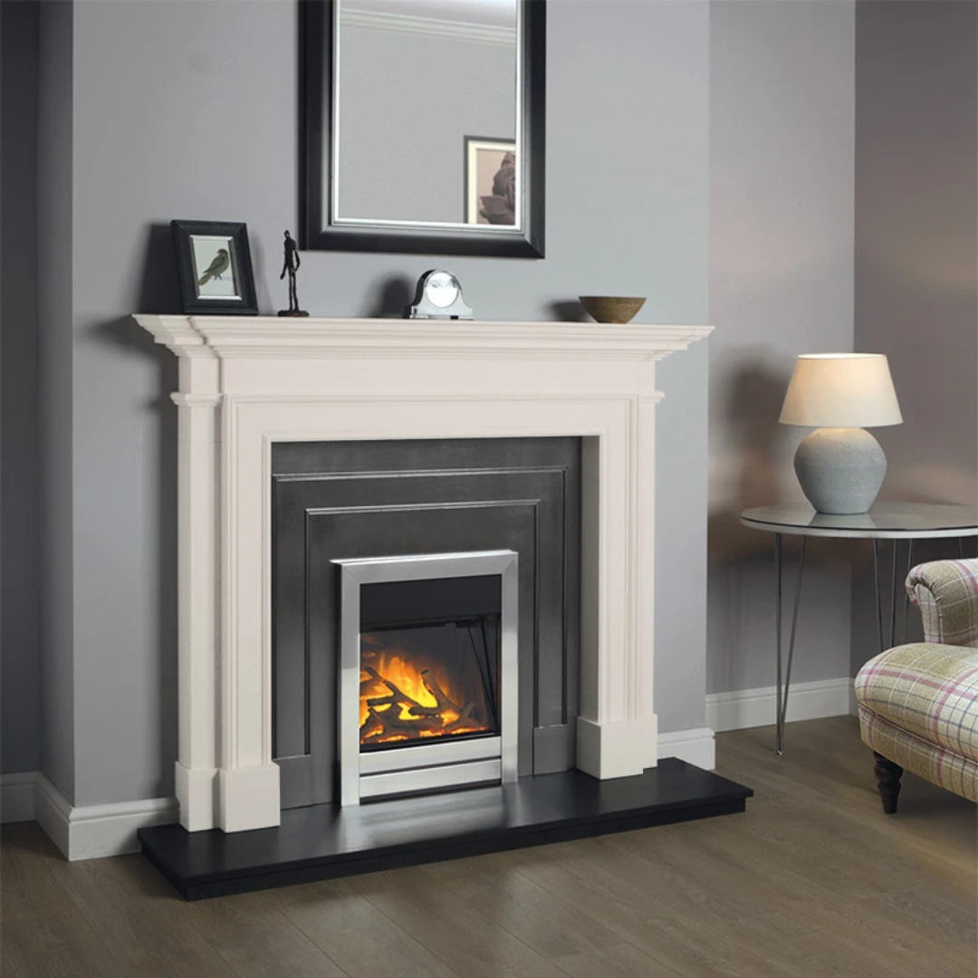 Pair the Blenheim Mantel with a polished granite or limestone hearth and an inset electric or gas fire to create a charming focal point. Its decorative lines and graceful form bring character and warmth to any room - perfect for elegant period homes or chic contemporary spaces alike.