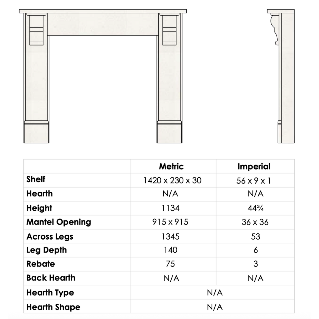 MANTEL ONLY - hearth, back panel, fire sold separately