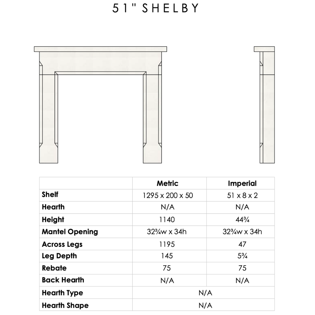 The Shelby Mantel in Aegean Limestone offers a contemporary twist on classic fireplace design. Available in 51" or 54" widths with a 25mm rebate, it features distinctive cut-out angled legs, creating a clean, architectural silhouette that works beautifully in modern interiors.