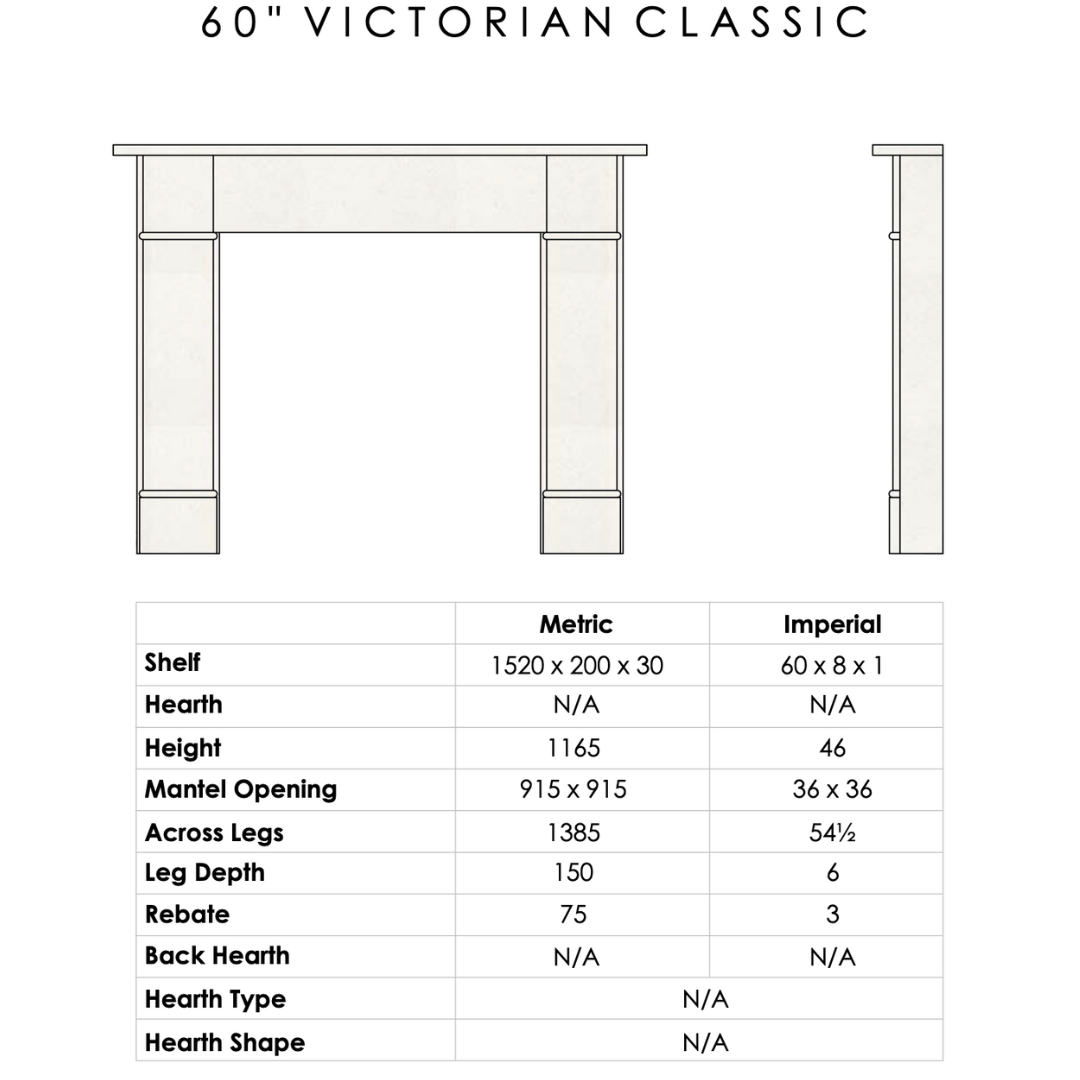 The Victorian Classic Mantel in Aegean Limestone is one of our most popular fireplace surrounds, offering a timeless design that beautifully bridges traditional elegance and contemporary style. Available in 48", 51", 54", 56", and 60" widths with either a 25mm or 75mm rebate, it provides flexibility to suit a wide range of interiors and installations.