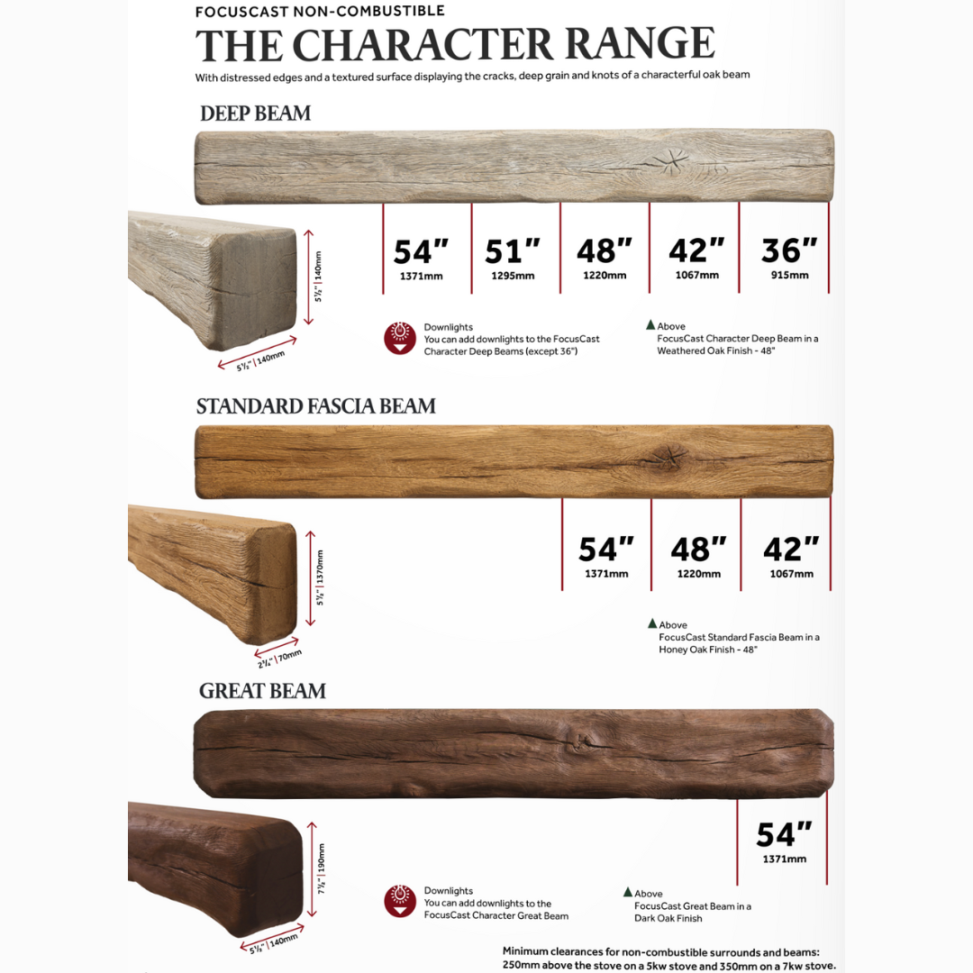 Character FocusCast Non-Combustible Fireplace Beam Complete with Easy-Fix Kit - Focus Fireplaces