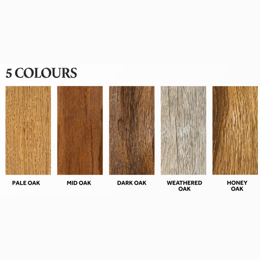 The Character range features distressed edges and a textured surface displaying the cracks, deep grain and knots of a characterful oak beam.