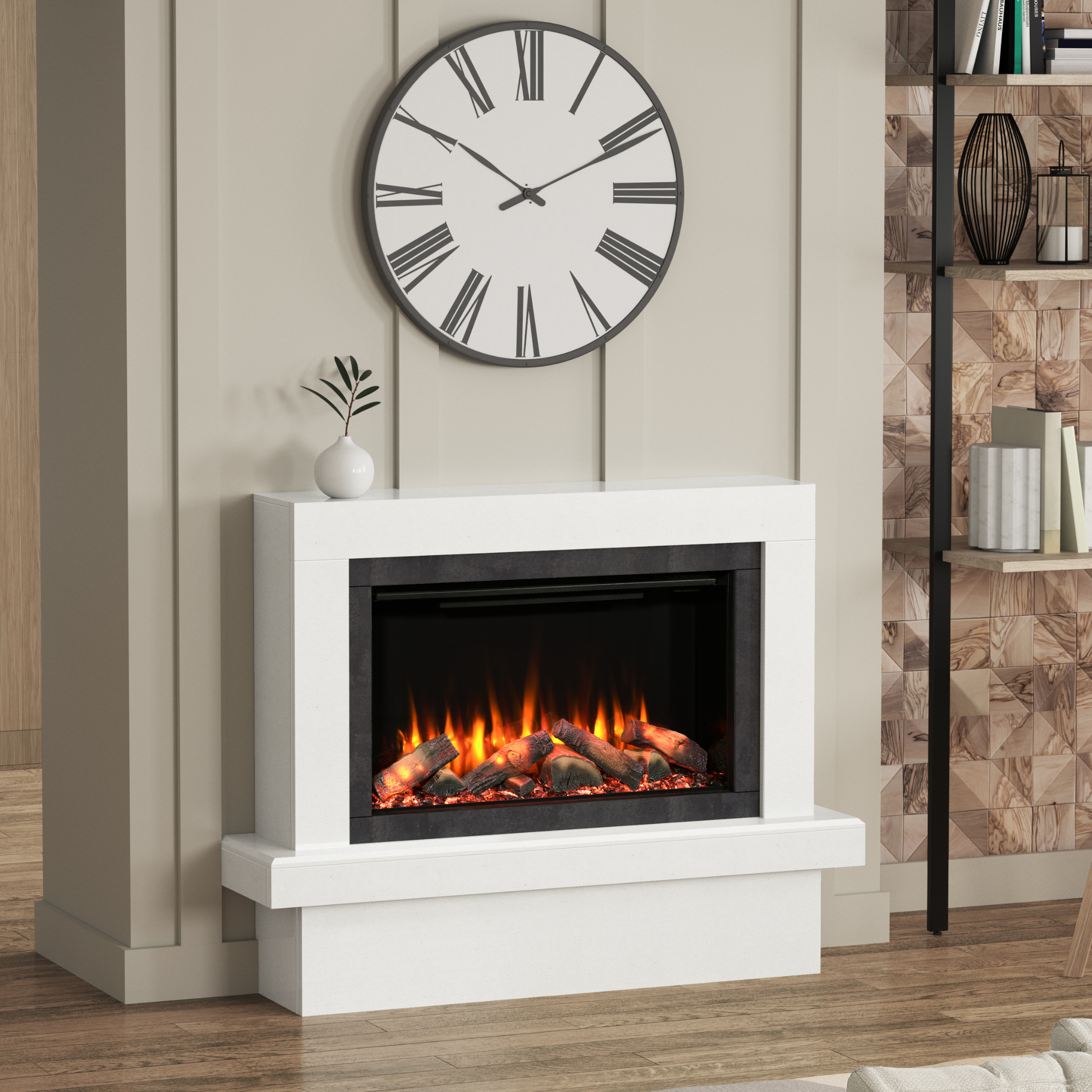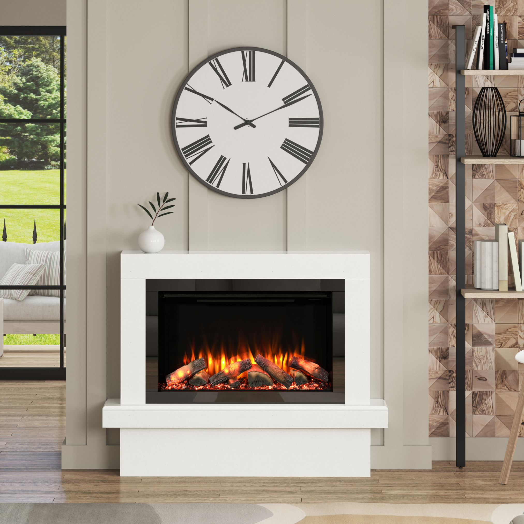 The collection features 13 contemporary fireplace designs, available in widths ranging from 47"-57", wall mounted and floor standing options, and in a selection of 3 elegant colours.