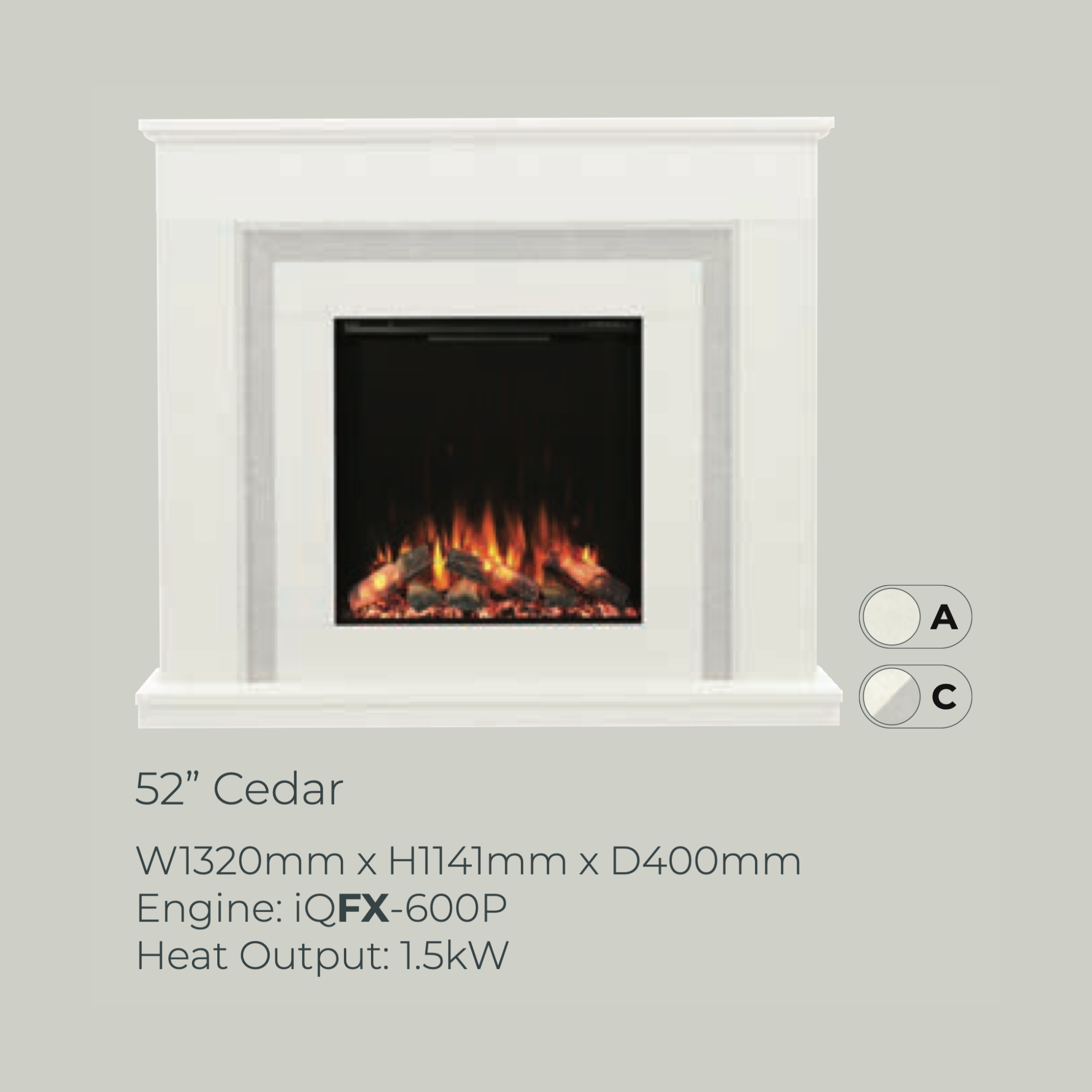 52" Cedar Luxury Micromarble Flat-To-Wall IQFX Fire and Fireplace Suite - Diamond