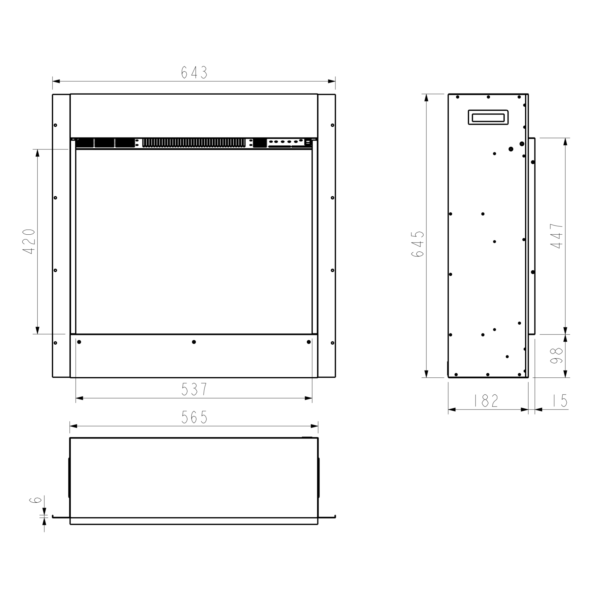 Dimensions: mm  H.645 x W.643 x D.182