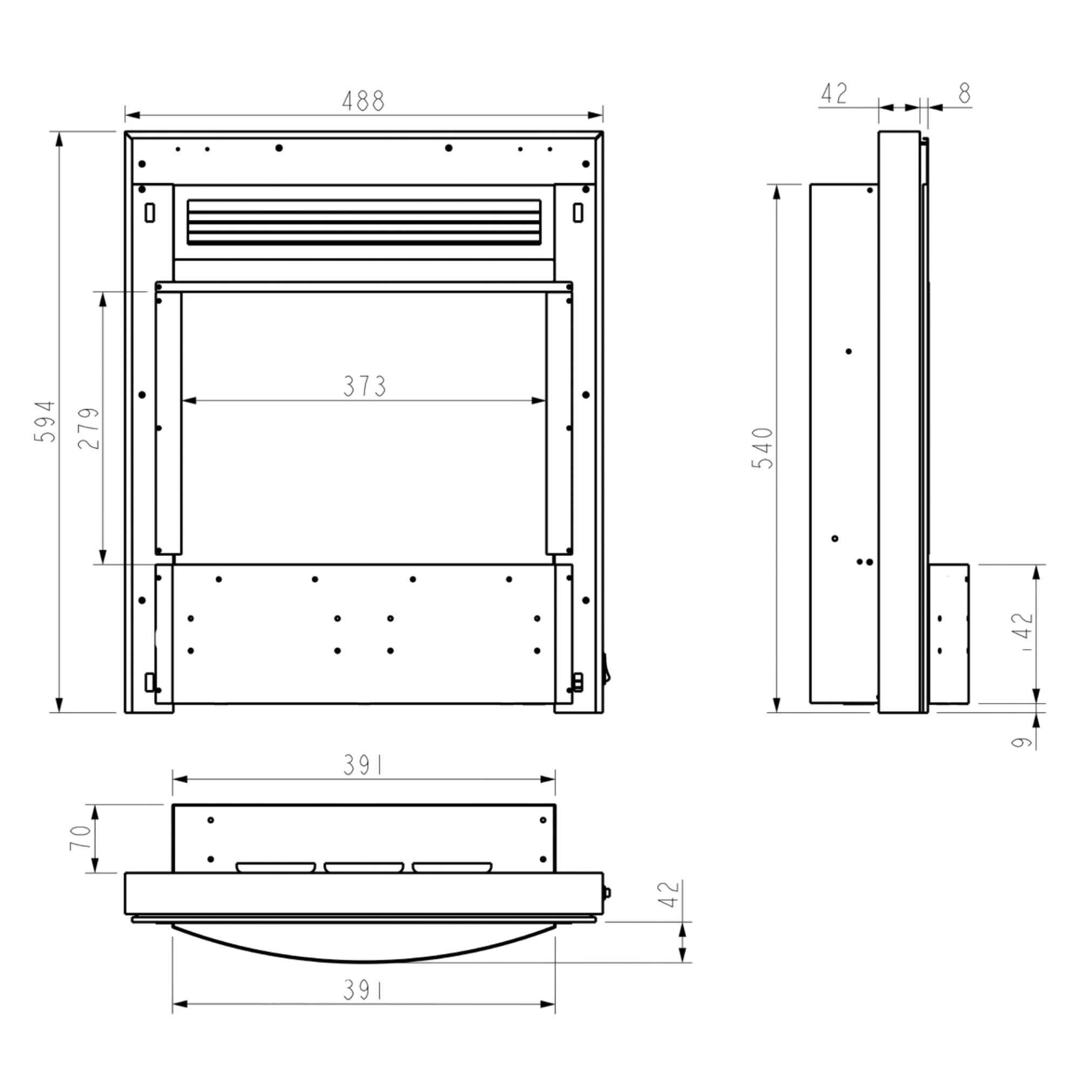 The inset rebate is 70mm and is fitted with a 40mm fixed spacer allowing easy manual control panel access. Decadence fascia made from high-quality cast iron, coated with a modern black nickel finish.