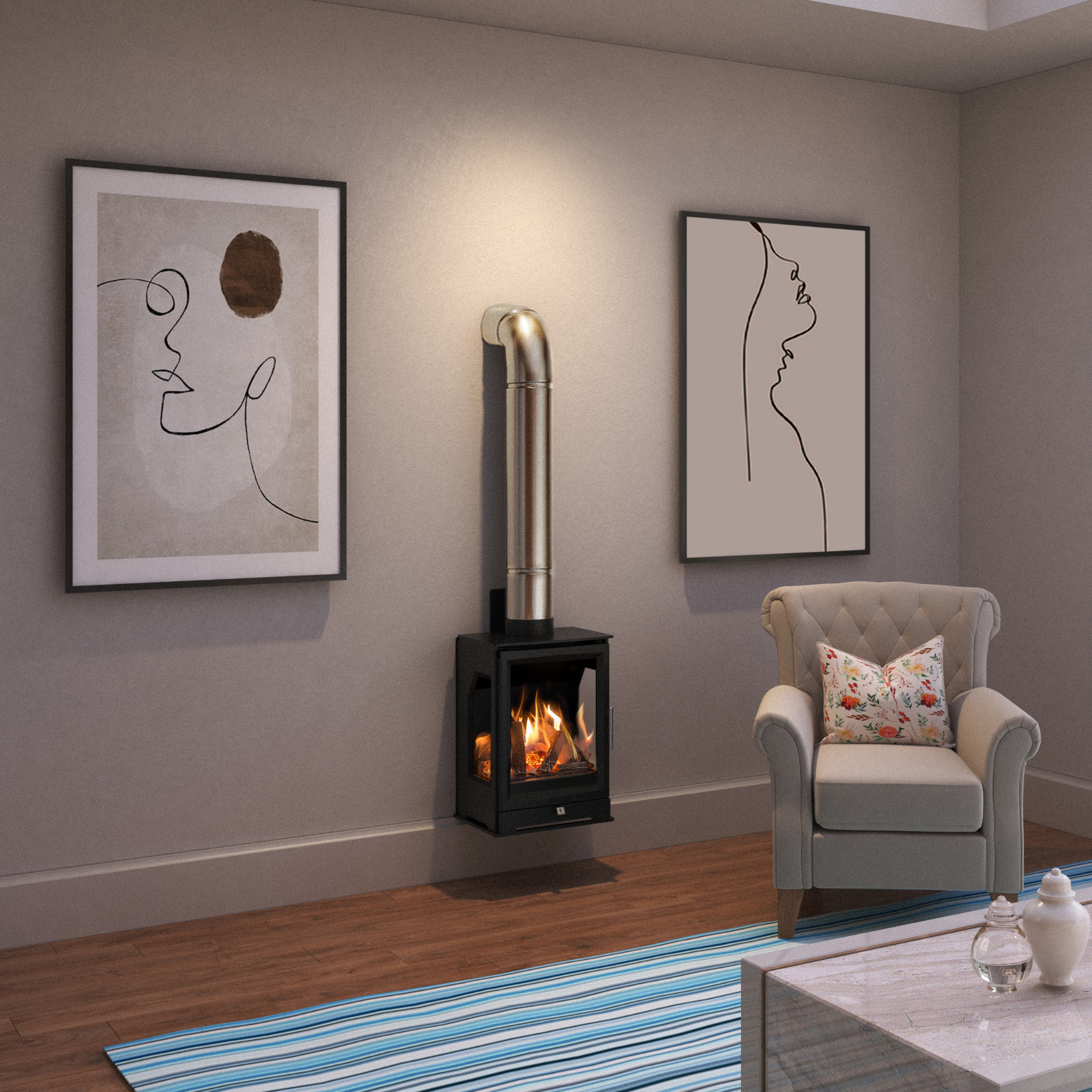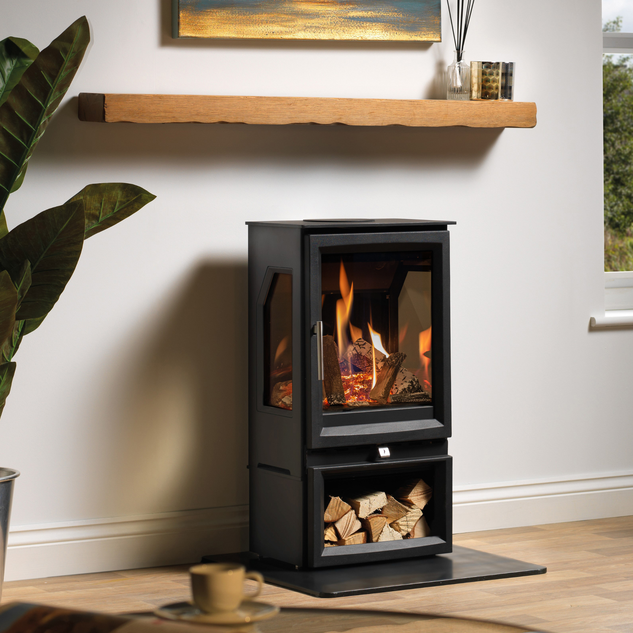 With the same distinctive styling as the Paragon Edge 3S Conventional Flue, this stove is the perfect focal point even if you don’t have a chimney. Hand painted logs create a nest of embers that draws you in, and 5kW of heat will keep you warm whatever the weather.