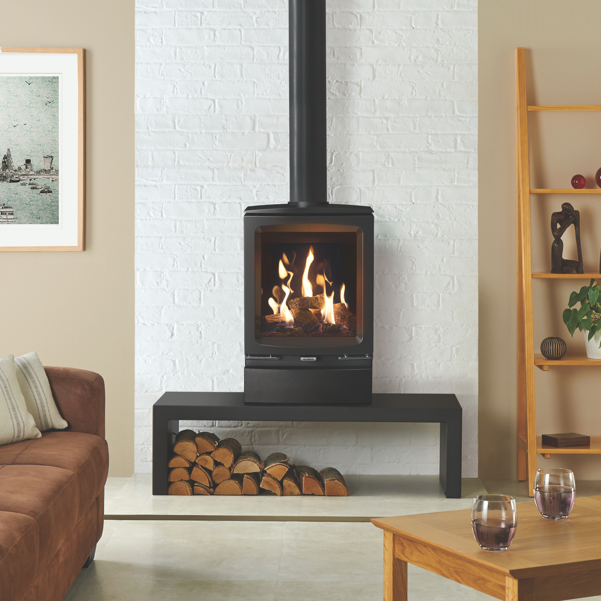 Creating breathtaking flame visuals, Vogue Gas stoves feature a highly realistic log bed and a polished EchoFlame Black Glass lining that provides a stunning, multi-sided reflection of the flames. Designed with the very latest gas fire technology, these cutting edge stoves provide an ample 4.3kW of heat and up to 90.6% efficiency.