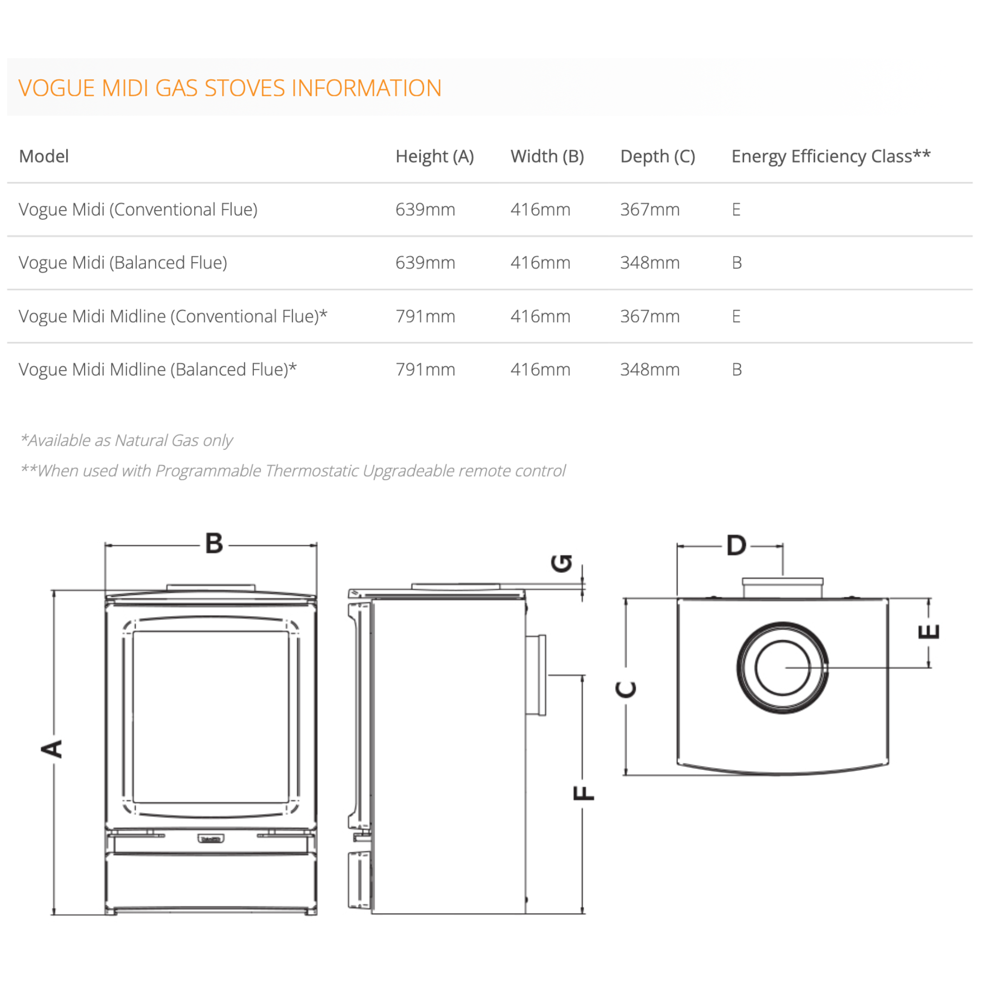 Vogue Midi Midline (Conventional Flue)* 791mm 416mm 367mm E
