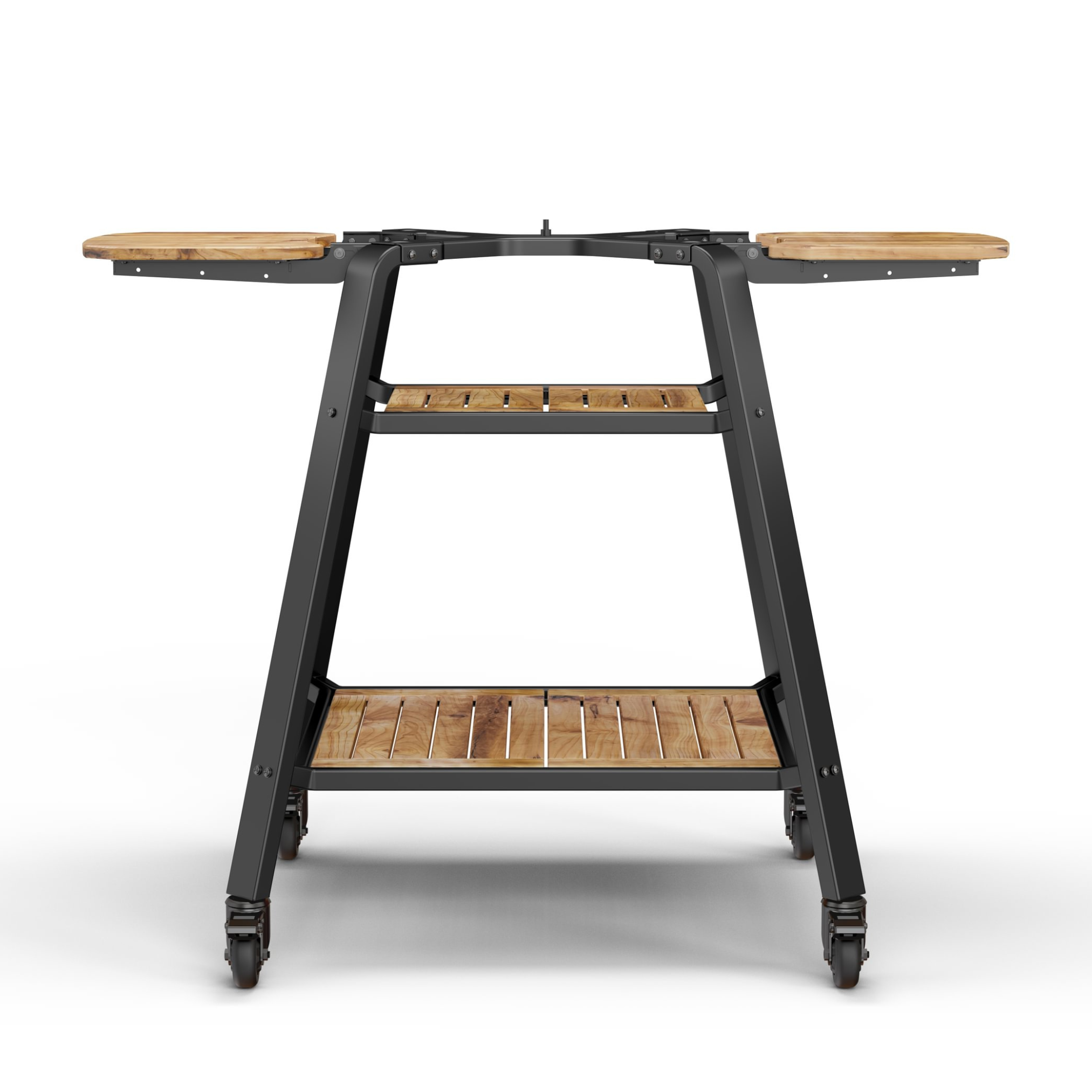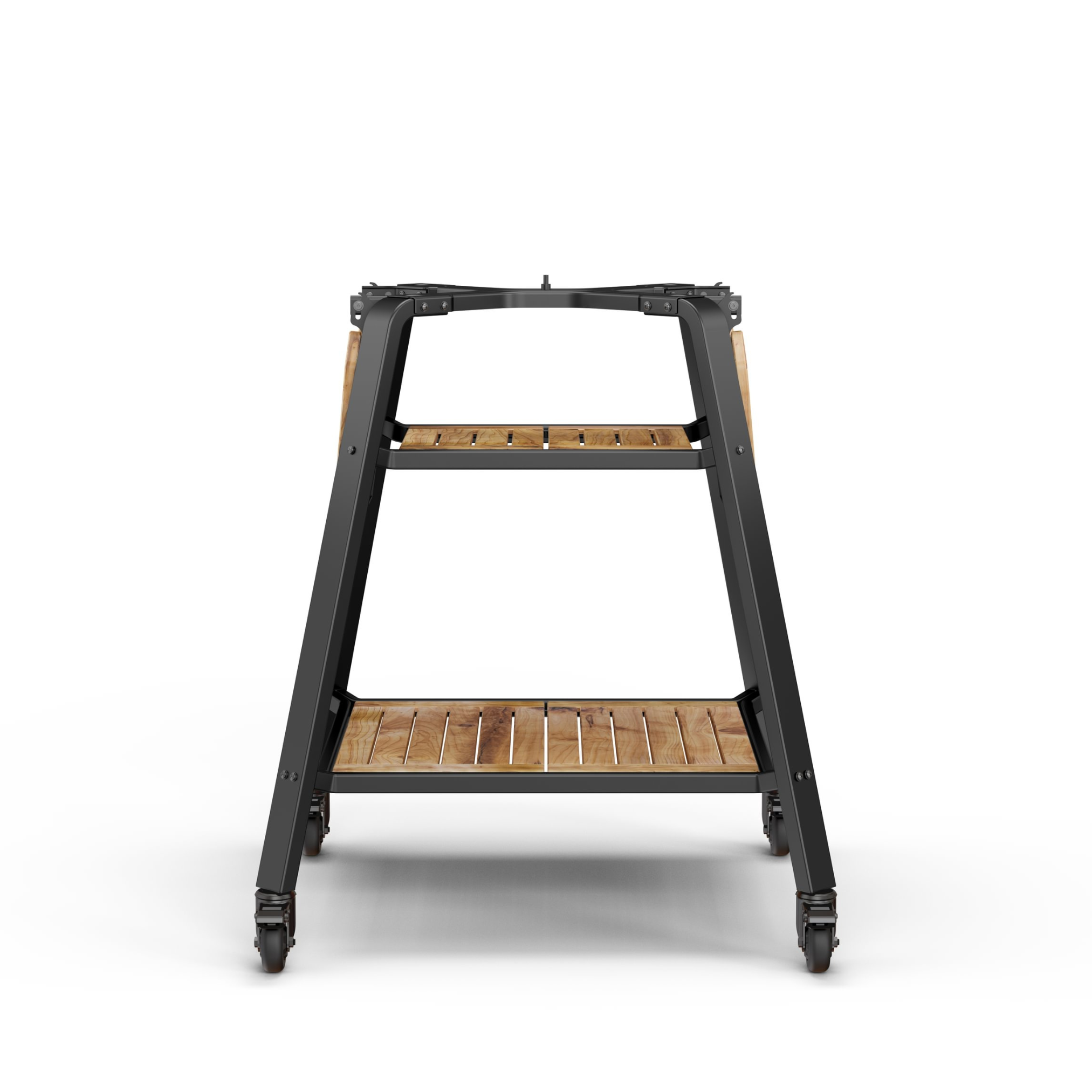 - Two acacia shelves for accessories and wood storage