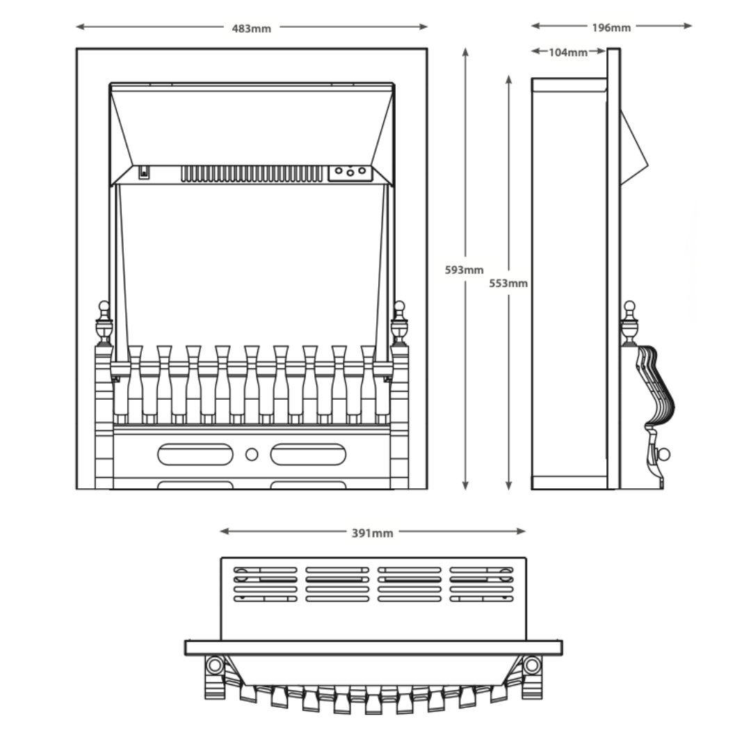 Behind the traditional façade, the Bayden delivers a beautifully realistic glowing coal-effect fuel bed and a mesmerising flame display, creating that cosy fireside atmosphere without the fuss of a real fire. It’s designed to fit standard 16″ fireplace openings, so installation is straightforward in most surrounds.