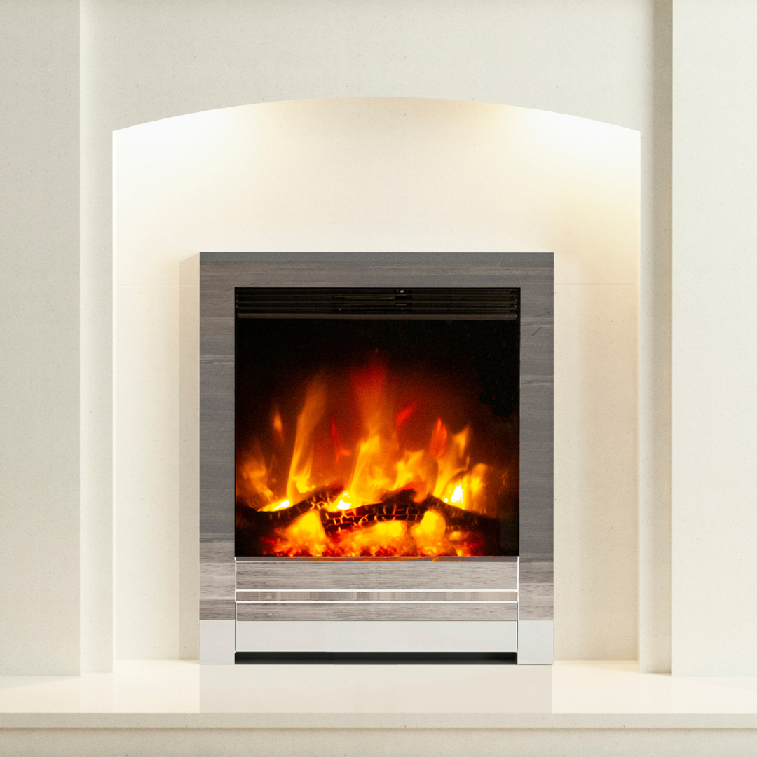 Available in three stylish finishes - Chrome, Black Nickel, and Matt Black - the Beam - Edge sits neatly into any standard 16" fireplace opening, making it a great upgrade for both classic surrounds and contemporary suites.