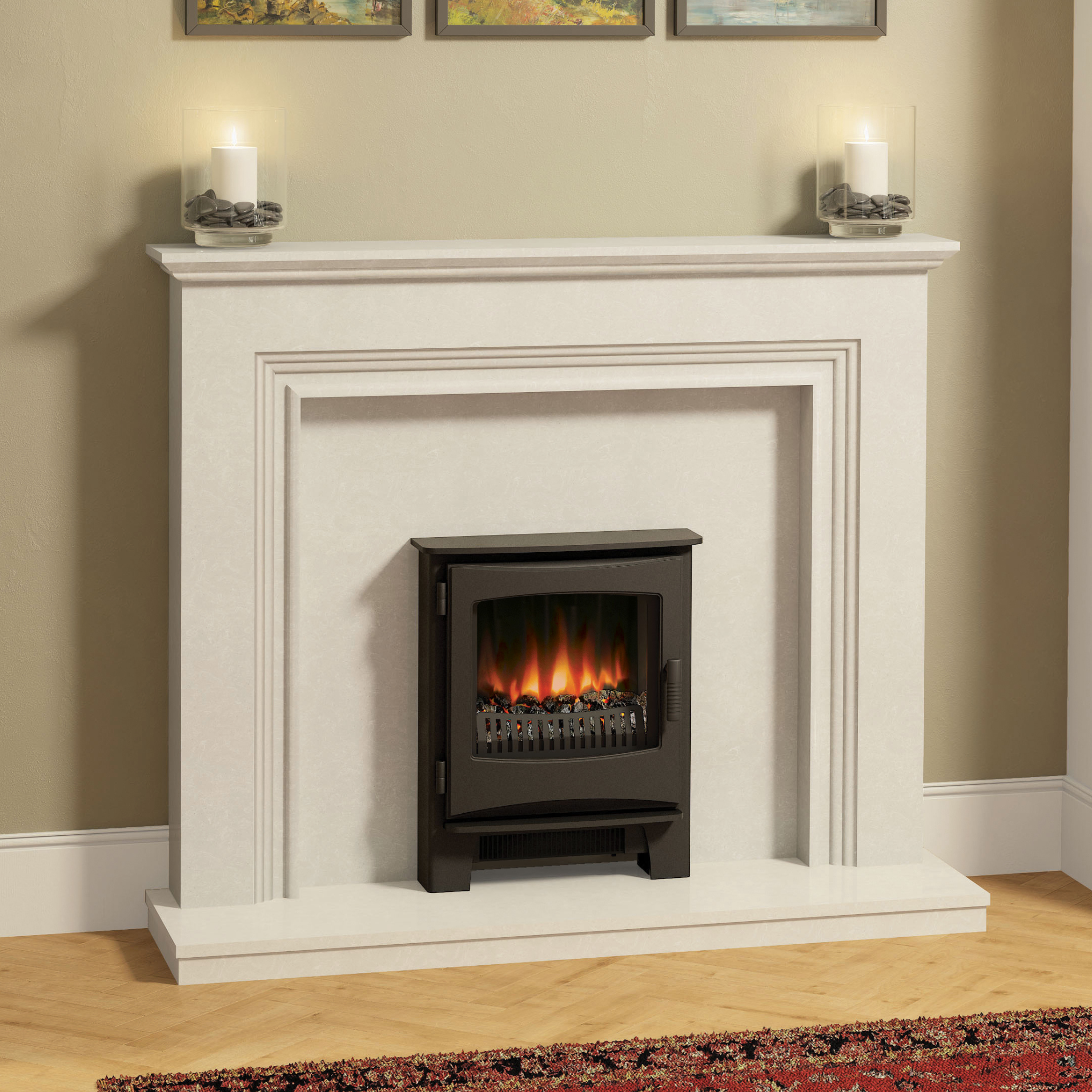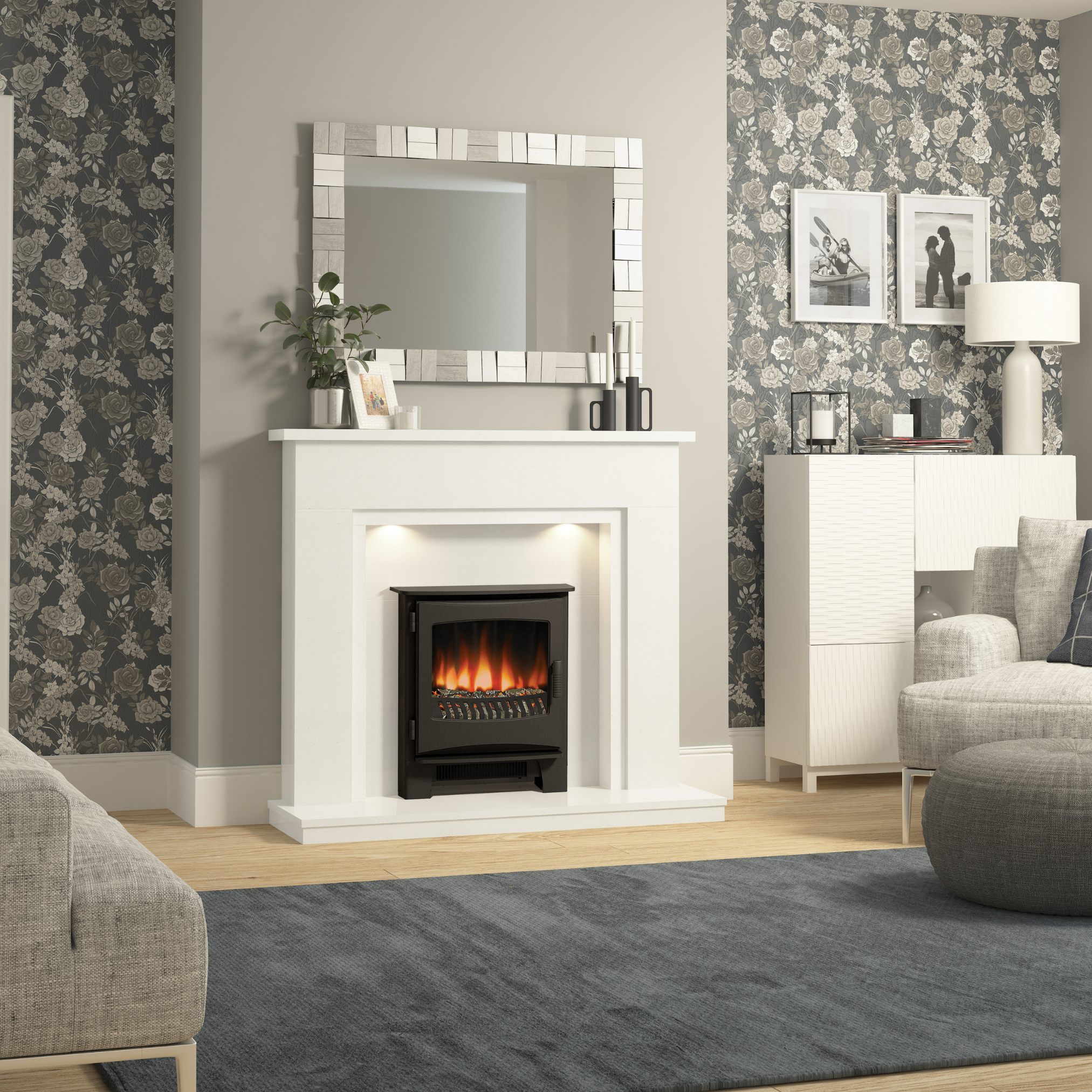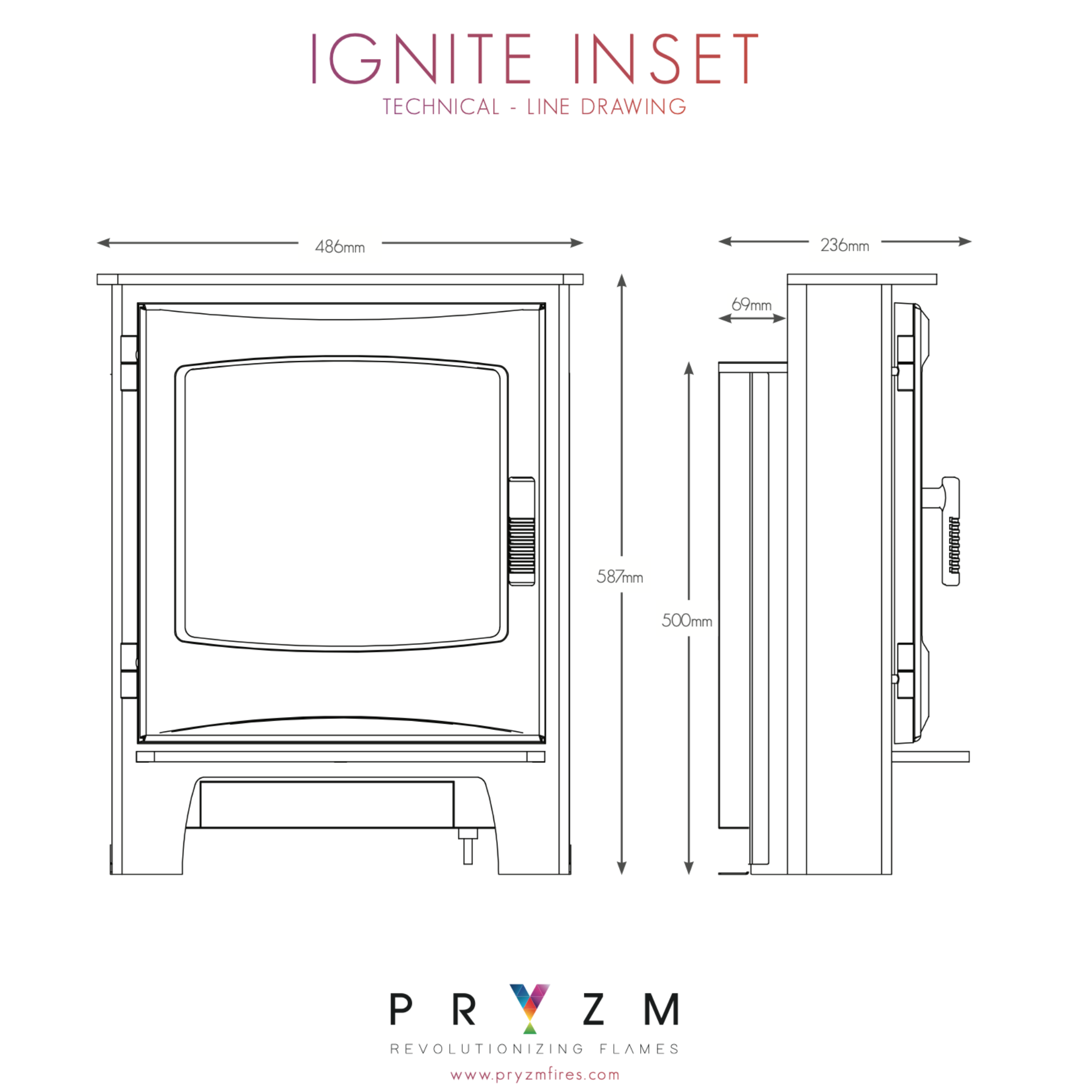 Pryzm's Ignite Inset electric stoves provide the shimmer and smoulder of a coal burning stove but in the most convenient form. This Steel construction in Matt Black finish is available in one size, providing up to 2kW heat output and a 7 day programmable thermostat remote control. Boasting a 69mm rebate making it perfect for any 45mm or 75mm rebated marble or timber surround. In the one size, the Ignite inset stove will fit into a standard 16” back panel cut out.