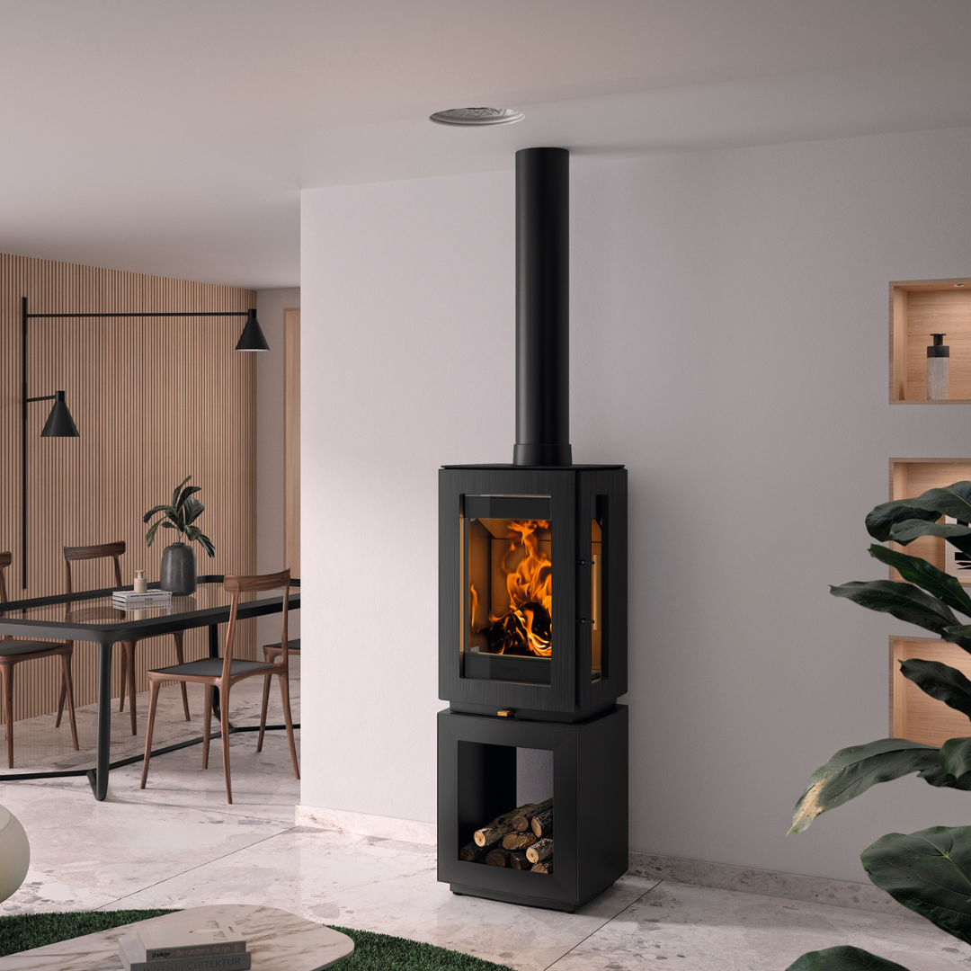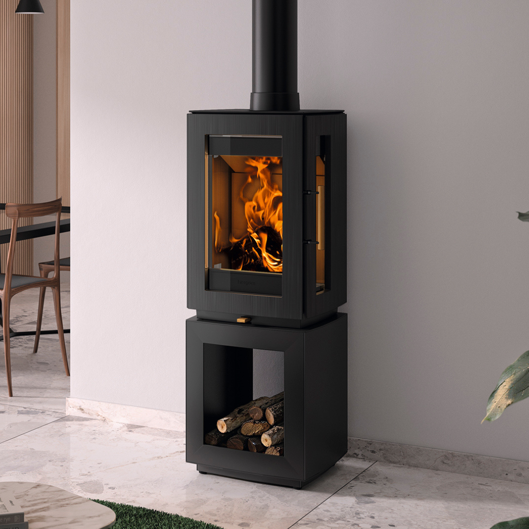 The Hergom Glow Logstore 1 combines timeless stove styling with everyday practicality, thanks to its integrated log storage compartment that keeps your fuel neatly stored and close at hand. With sleek lines and a large glass viewing window, it creates a stunning focal point and delivers a mesmerising view of the flames.