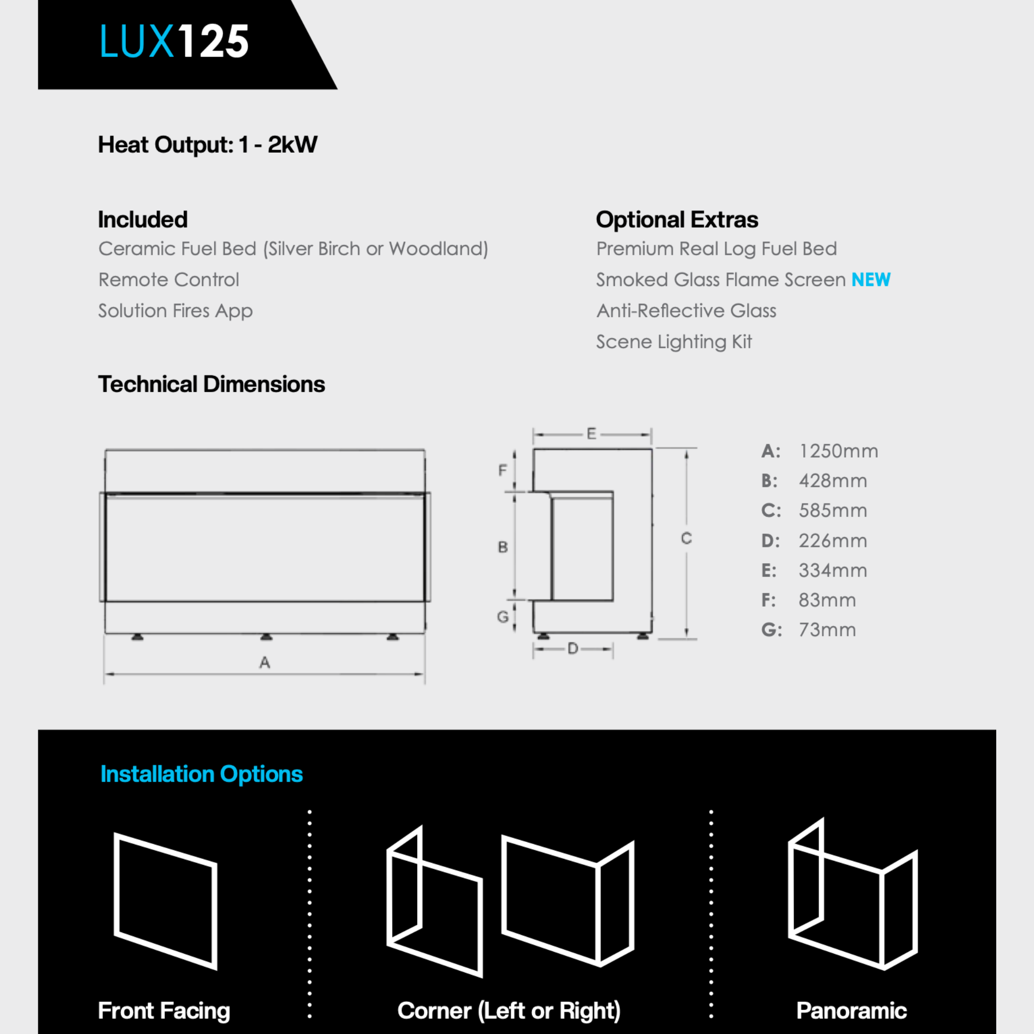 125cm | LUX 125 | 1250 W x 334 D x 585 H |