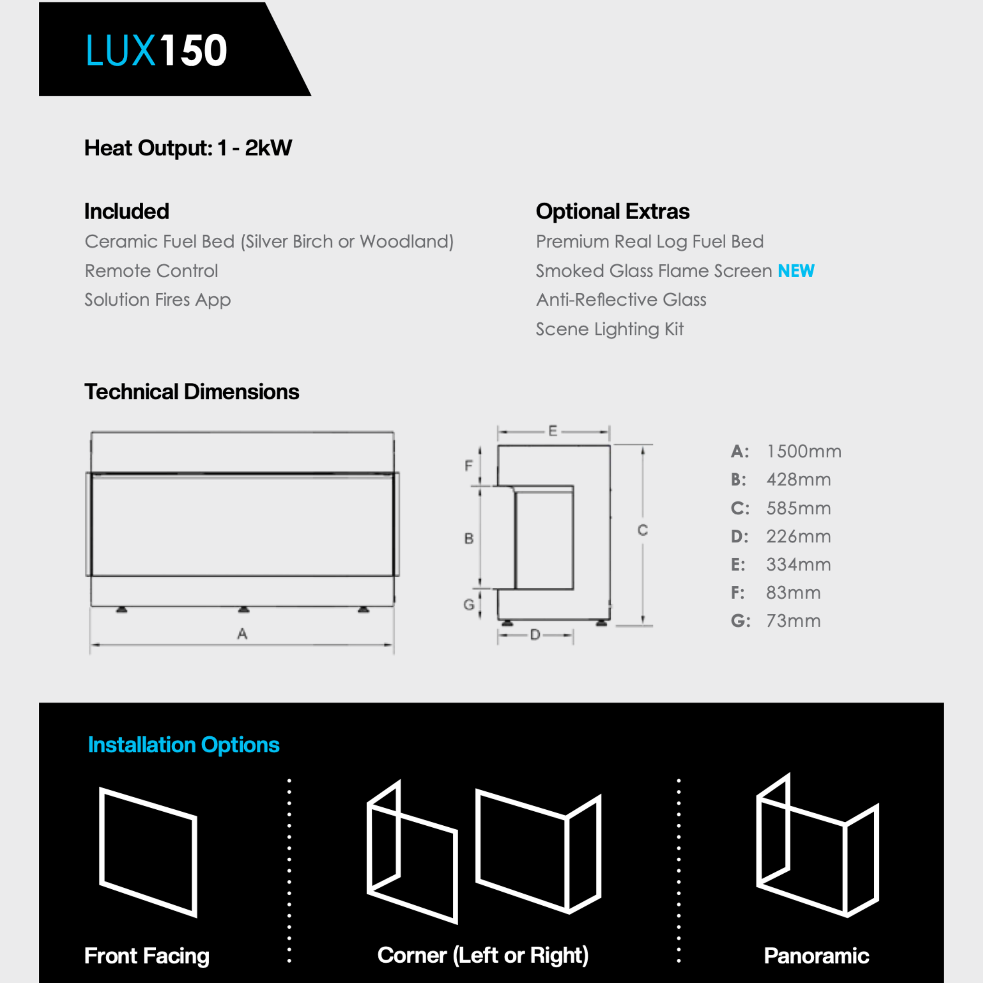150cm | LUX 150 | 1500 W x 334 D x 585 H |