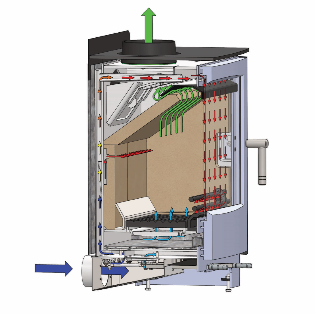 Purpose-built for burning wood efficiently, the Woodland features an intuitive dual-control air system, giving you precise control over combustion and flame intensity. Advanced tertiary air technology promotes post-combustion of flue gases, ensuring more heat is extracted from every log while significantly reducing emissions. The result is a cleaner burn, greater efficiency, and maximum energy from your fuel.