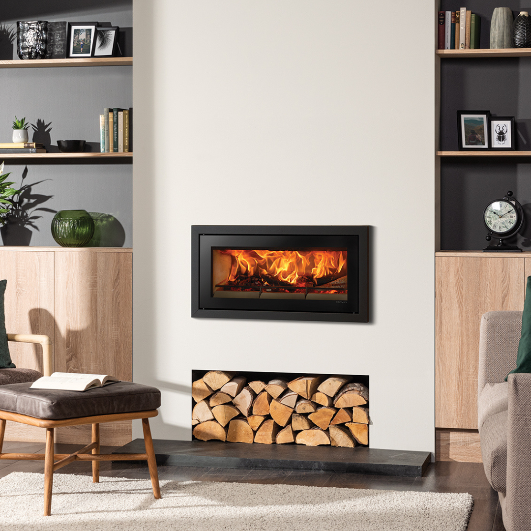 The Stovax Studio 2 Inset is designed for larger rooms, offering a broad flame picture and powerful heat output within a sleek, contemporary cassette fire.