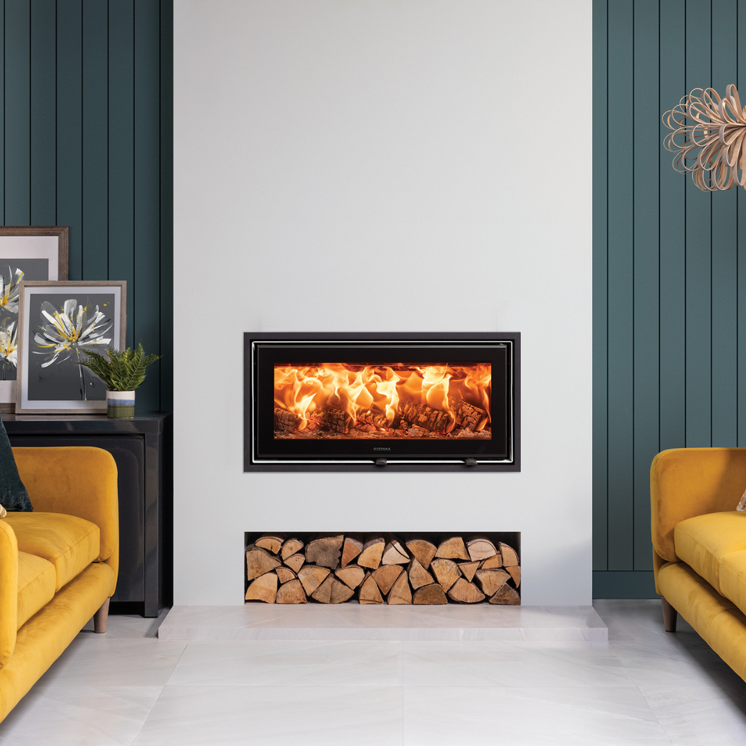 The Stovax Studio Air 2 Inset is designed for larger spaces, offering a wider flame picture and increased heat output while maintaining the sleek, built-in aesthetic of the Studio range.