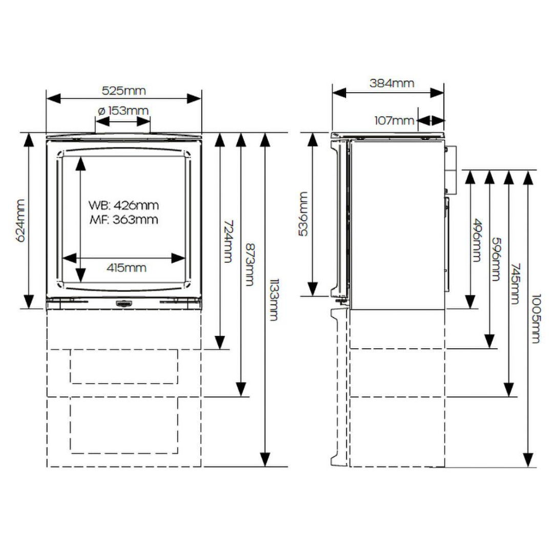 | With Highline Log Store | 525mm | 1133mm | 384mm |