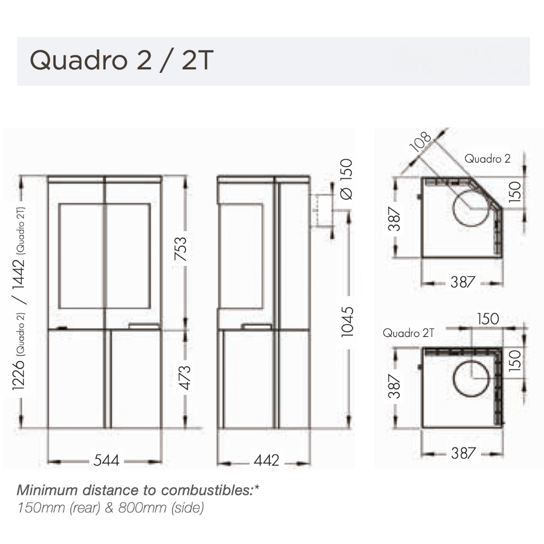 Perfect for both central or corner installations (with the optional corner kit), the Quadro 2 combines style, efficiency, and functionality for modern living spaces.