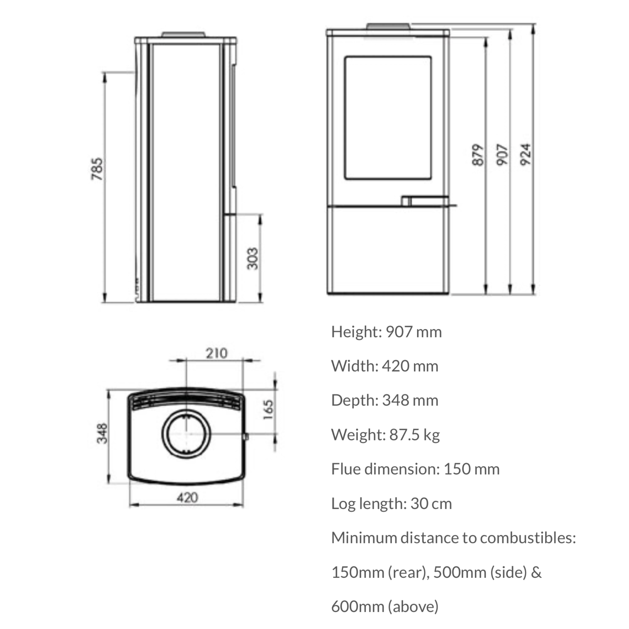 Flue outlet: 150mm, Top or rear