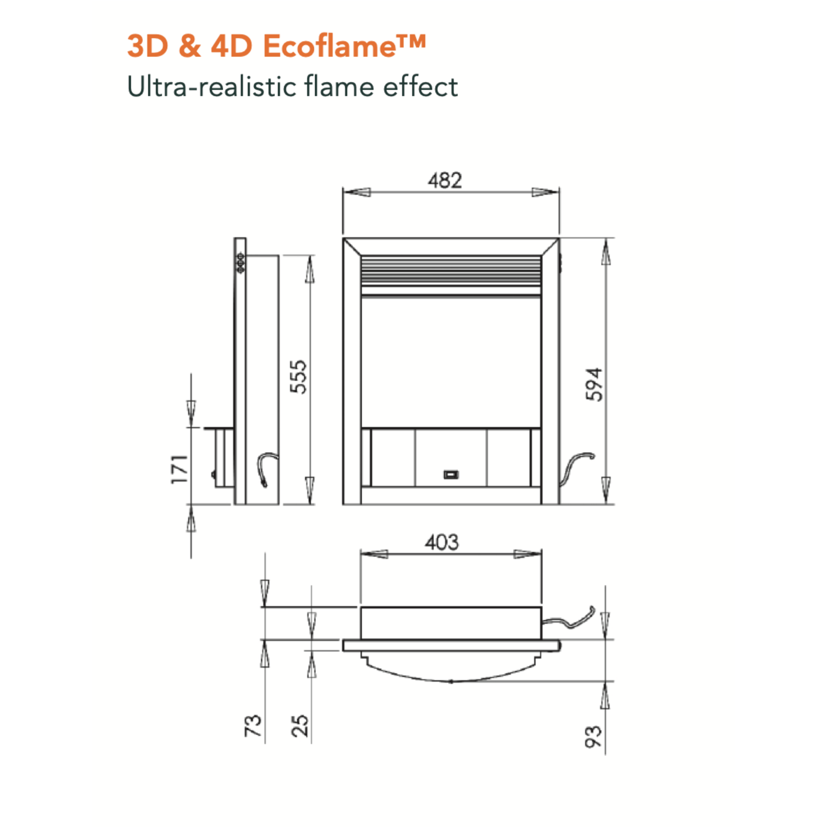 Building on the overwhelming success of the 3D Ecoflame, the 4D Ecoflame adds more features for an even more luxurious experience. All models benefit from the ultra-realistic deep reflective fuel and flame effect that has set new standards across the industry. The range also boasts flickering ember effect fuel bed, 7-day timer, optional trim and fireplace mood lights to name but just a few superb innovations.