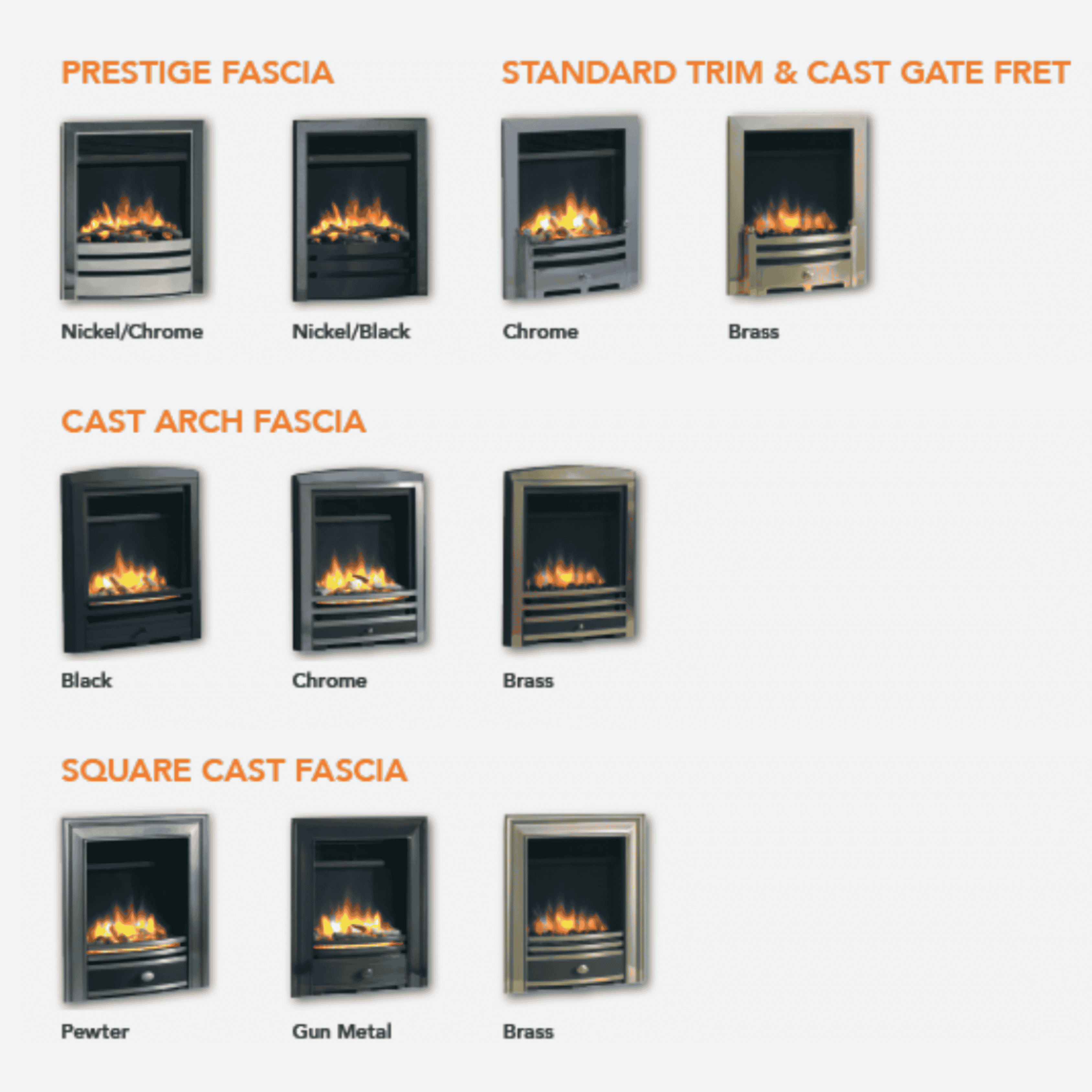 Fits most Charlton & Jenrick Frets and Fascia’s with many fire and fascia packages available. - Fits most 16″ Fireplace openings.
