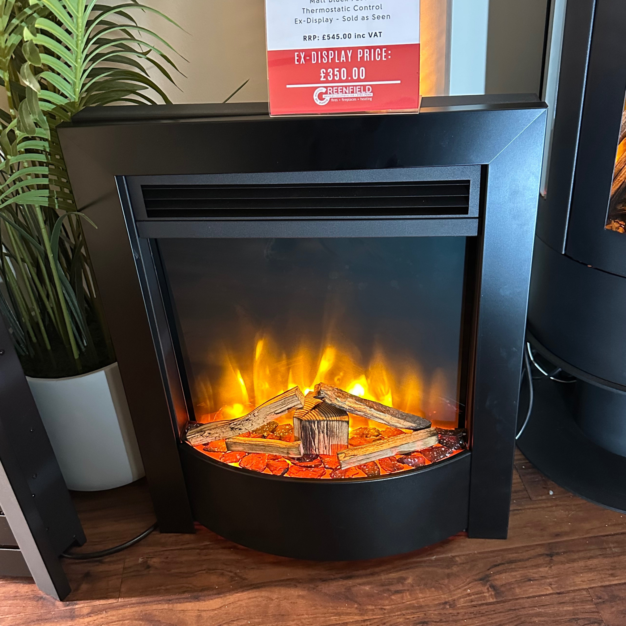 Ex-Display Celsi 16" Inset Electric Fire. Matt black metal modern fascia.