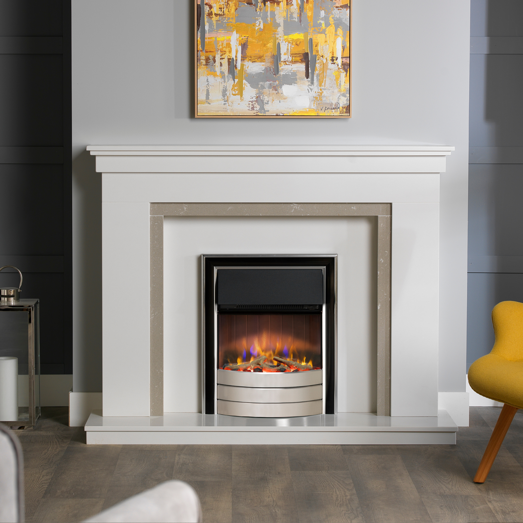 The Skeldon inset electric fire incorporates the unique Optiflame 3D the latest in flame technology from Dimplex. Creating a realistic and captivating 3D flame effect, the Skeldon is a contemporary modern design, which will compliment any interior. Optiflame 3D gives the power of choice. Add a blue flame for cool, calm vibes or choose a deep orange for a glorious glow. Adjust the flame brightness and downlighting to enhance the drama and you can choose from coals, logs, crystals, or pebble to create the fuel bed you desire. Providing up to 2kW of heat, the Skeldon can be used independently of the heat offering a warm ambience around the home at any time of the year. Controlled by the easy-to-use remote control or the manual controls located on the top right had side of the fire, This model comes with a host of features including LED lighting, thermostat, runback timer, two heat settings, ambient flame cycle offering a choice of colours which are all controlled by the touch of a button. The beauty of a real fire, the simplicity of electric.