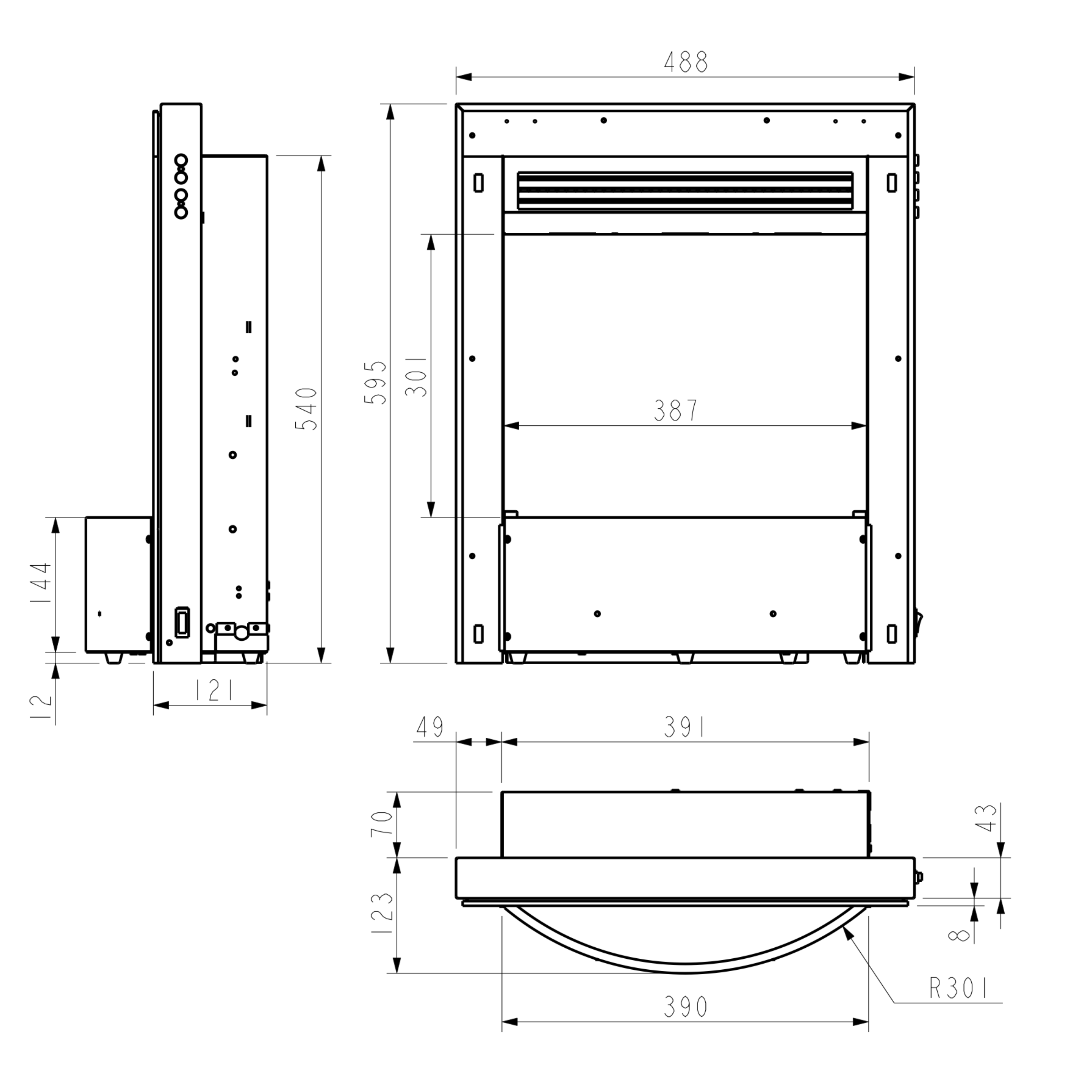 The inset rebate is 70mm and is fitted with a 40mm fixed spacer allowing easy manual control panel access. Fascia made from high-quality anodised extruded aluminium.