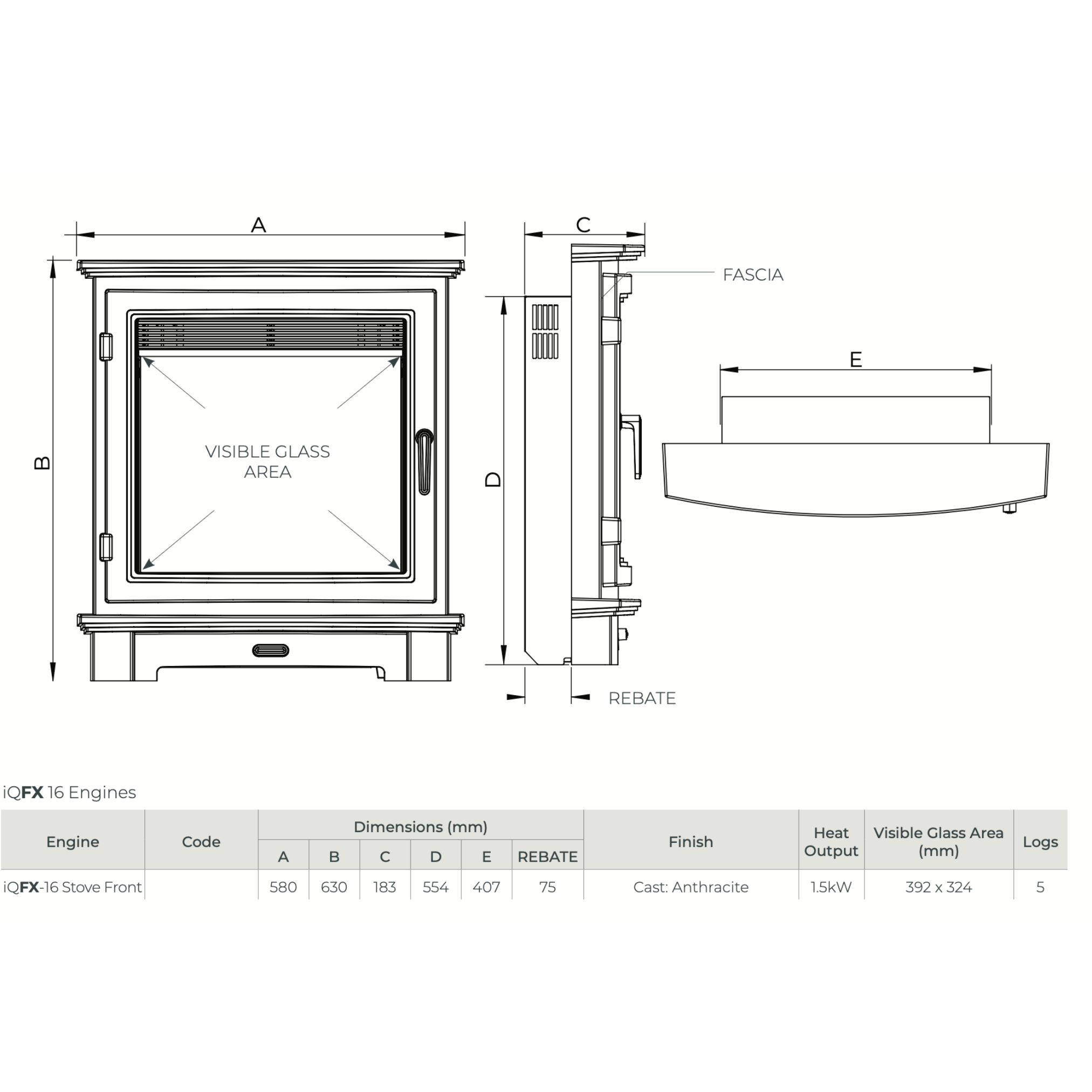 The iQFX-16 comes with a standard 75mm rebate, making it the ideal eFire for 16" back panel cutouts, offering a seamless plug-and-play retrofit solution.