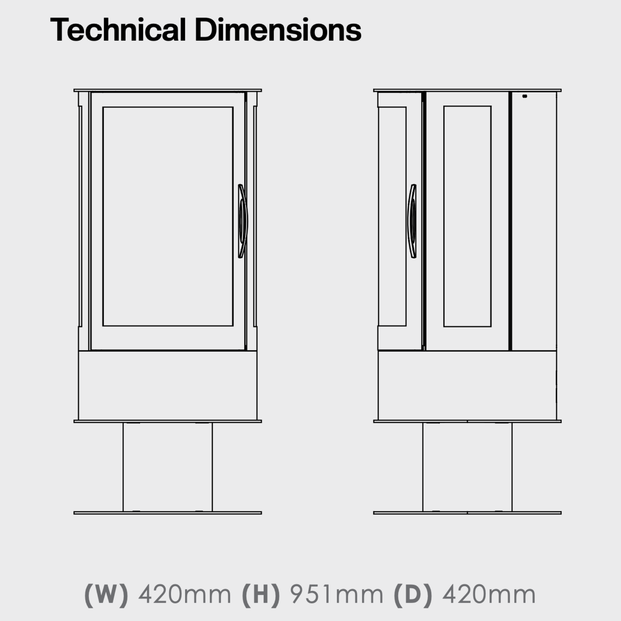 The SLE42s electric stove brings modern style, efficiency, and an authentic flame effect into your home. With its cylindrical design and three-sided glass, you’ll enjoy a panoramic view of the enchanting etronic 3D flame effect and radiant log fuel bed. Supplied with a remote control for effortless operation, the SLE42s also offers the option of a decorative flue collar for added realism.