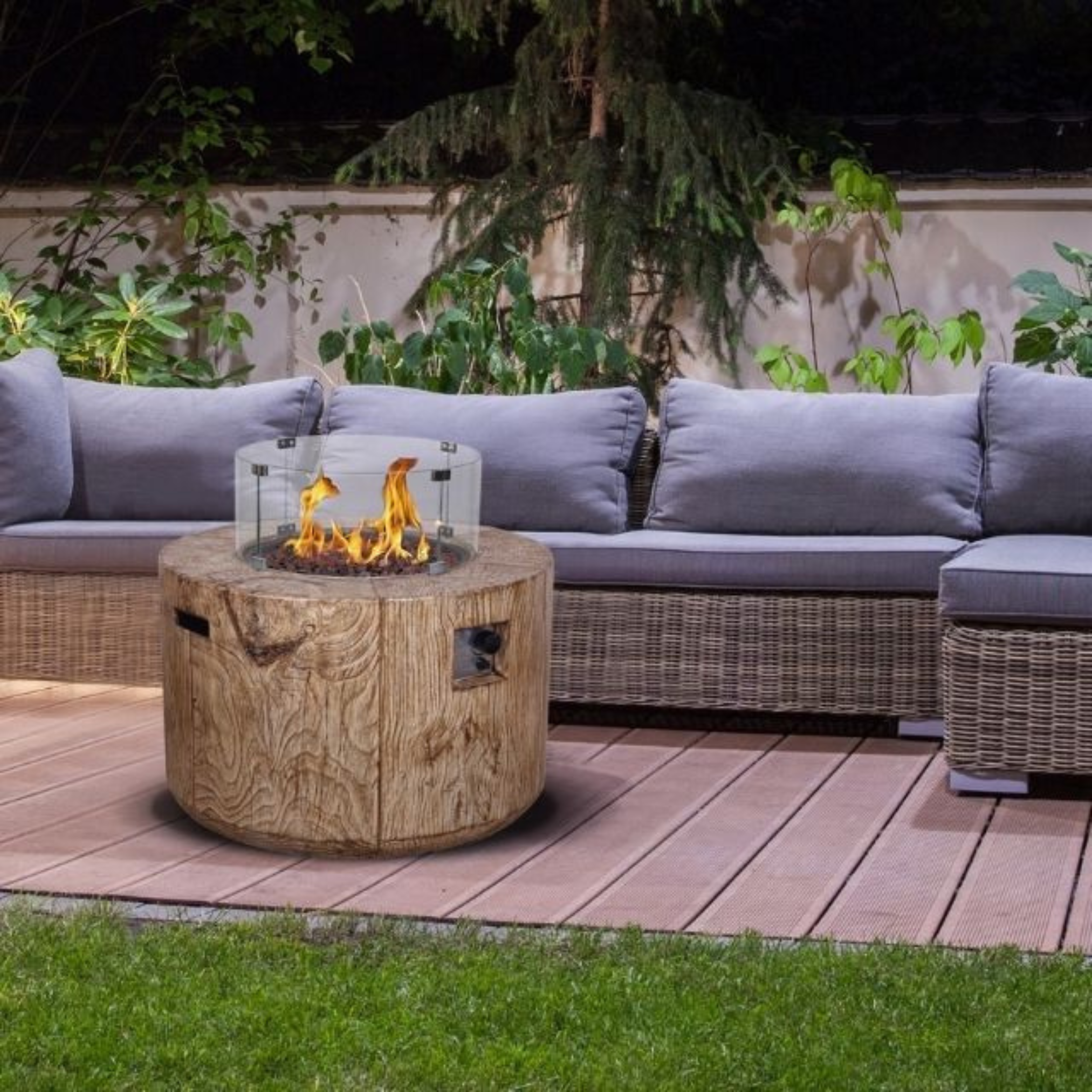The Verano Round is a stylish and practical centrepiece designed to bring warmth, light, and atmosphere to your outdoor gatherings. Crafted from an eco-friendly composite that recreates the rich texture of natural wood, this circular table cleverly conceals its gas bottle while placing a real flame gas fire at the heart of your entertaining space.